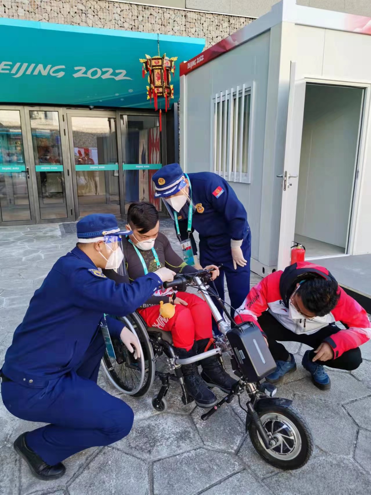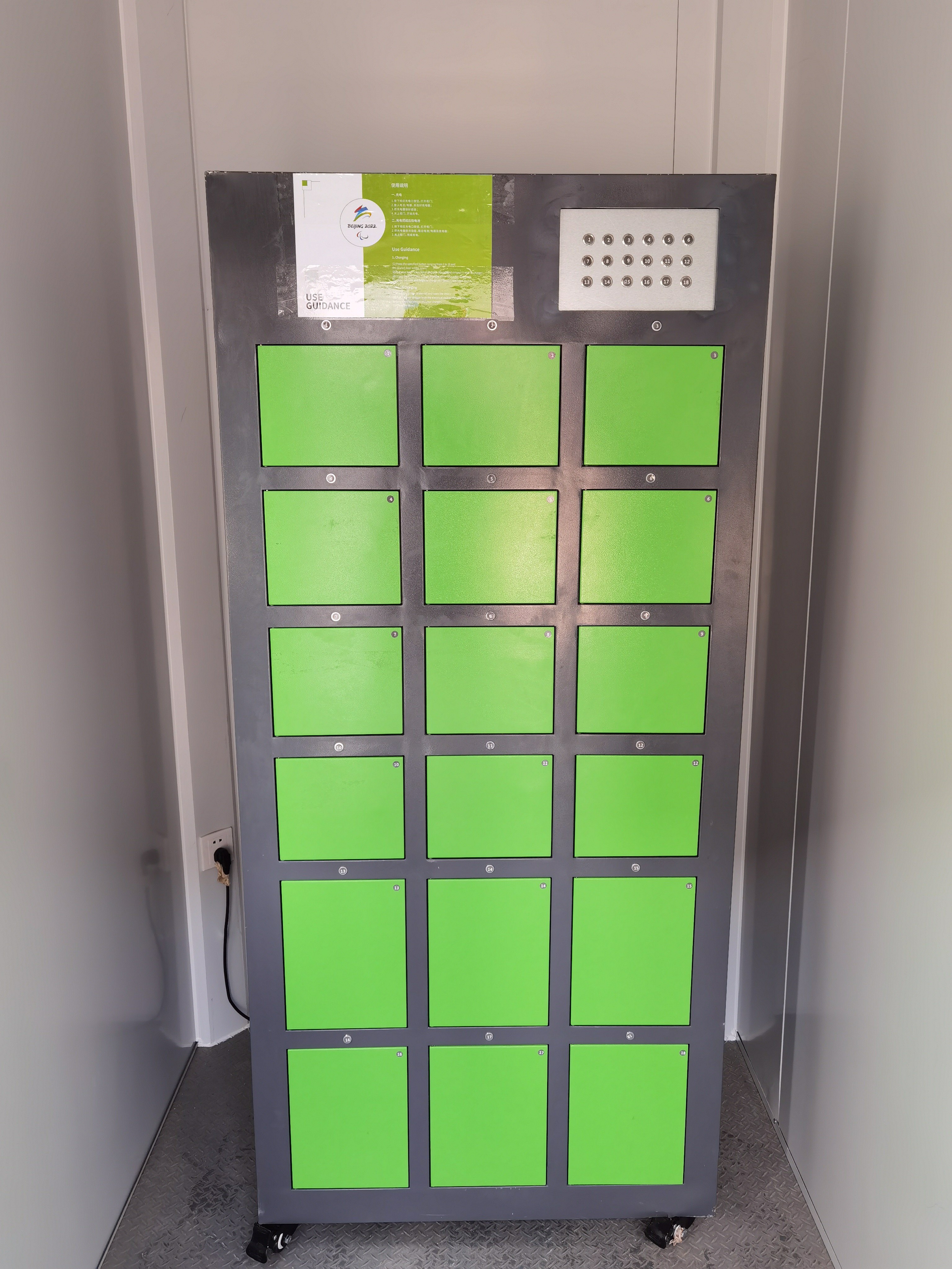 2月27日下午,消防安保团队在延庆冬残奥村运动员二组团室外安装了电动轮椅电池充电柜。该充电柜可同时为18个电动轮椅电池提供免费充电服务。每块电池最快在5个小时内即可完成蓄电。赛时将由工作人员轮流值守充电柜,为运动员的电动轮椅进行室外充电。