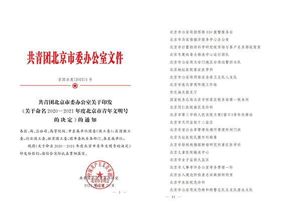 新春伊始,喜报频传。继国家结核病临床实验室获得“北京市青年安全生产示范岗”后,共青团北京市委办公室印发《关于命名2020-2021年度北京市青年文明号的决定》,北京胸科医院重症医学科荣获“2020-2021年度北京市青年文明号”称号。