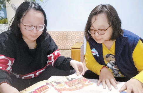崔珂和妈妈在家里学习冬残奥会相关知识,为即将召开的冬残奥会做好服务。