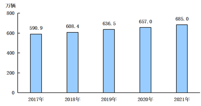 图4 2017-2021年年末机动车保有量