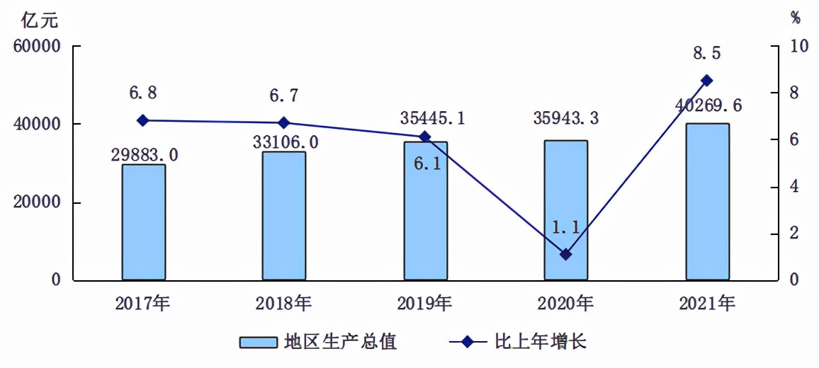 图1 2017-2021年地区生产总值及增长速度