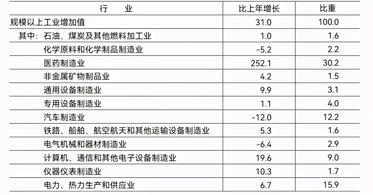 表5 2021年规模以上工业重点监测行业增加值