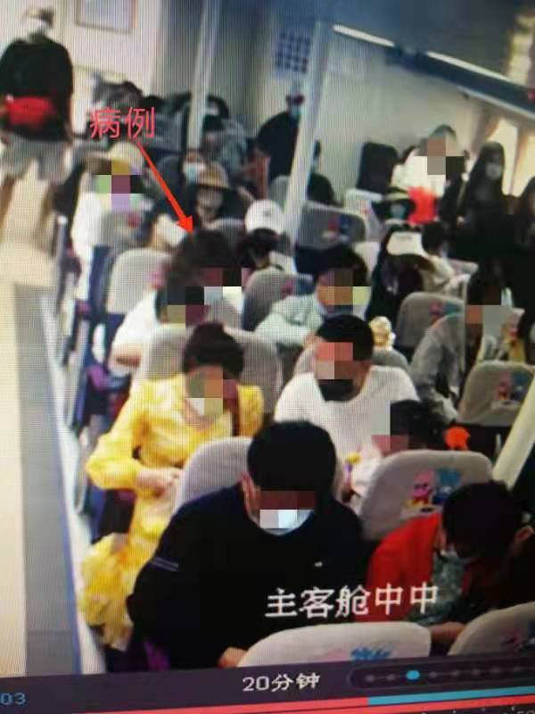 图10:2月26日11:58乘坐摆渡船从港口前往蜈支洲岛,病例座位前后三排的同船人员