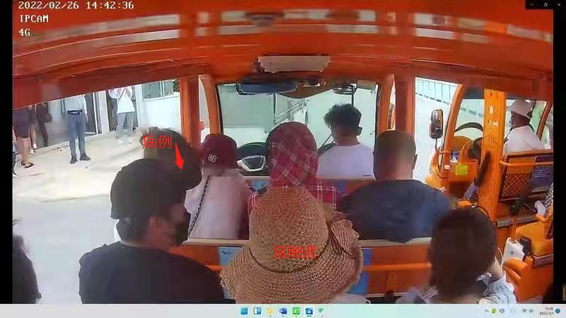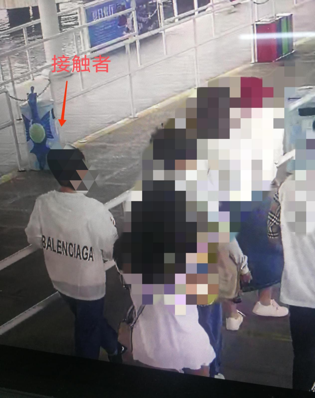 图9:2月26日11:35,在前往摆渡船通道处1人与病例近距离接触且未做防护