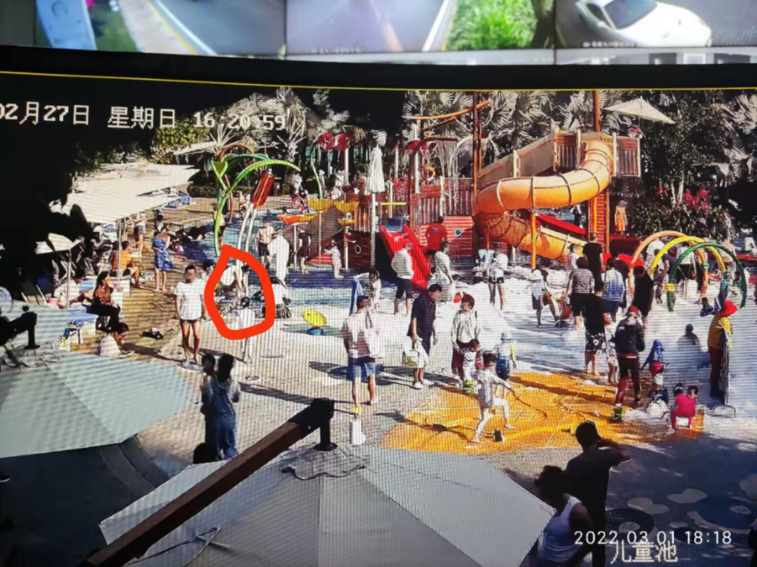 2月27日14:50至16:30在海棠区仁恒皇冠假日酒店儿童池游玩(附图12),16:30乘坐P1电梯离开儿童池,16:36到二楼奇林幻境(附图13),16:58乘坐扶梯离开奇林幻境,16:59—18:24在儿童餐厅(附图14)。