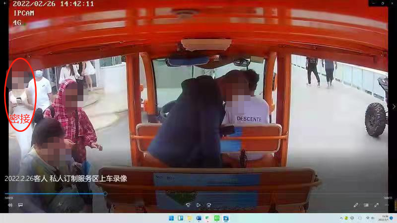 图8:2月26日14:42蜈支洲岛乘车去冬季码头电瓶车5人(有3人坐在最后一排)