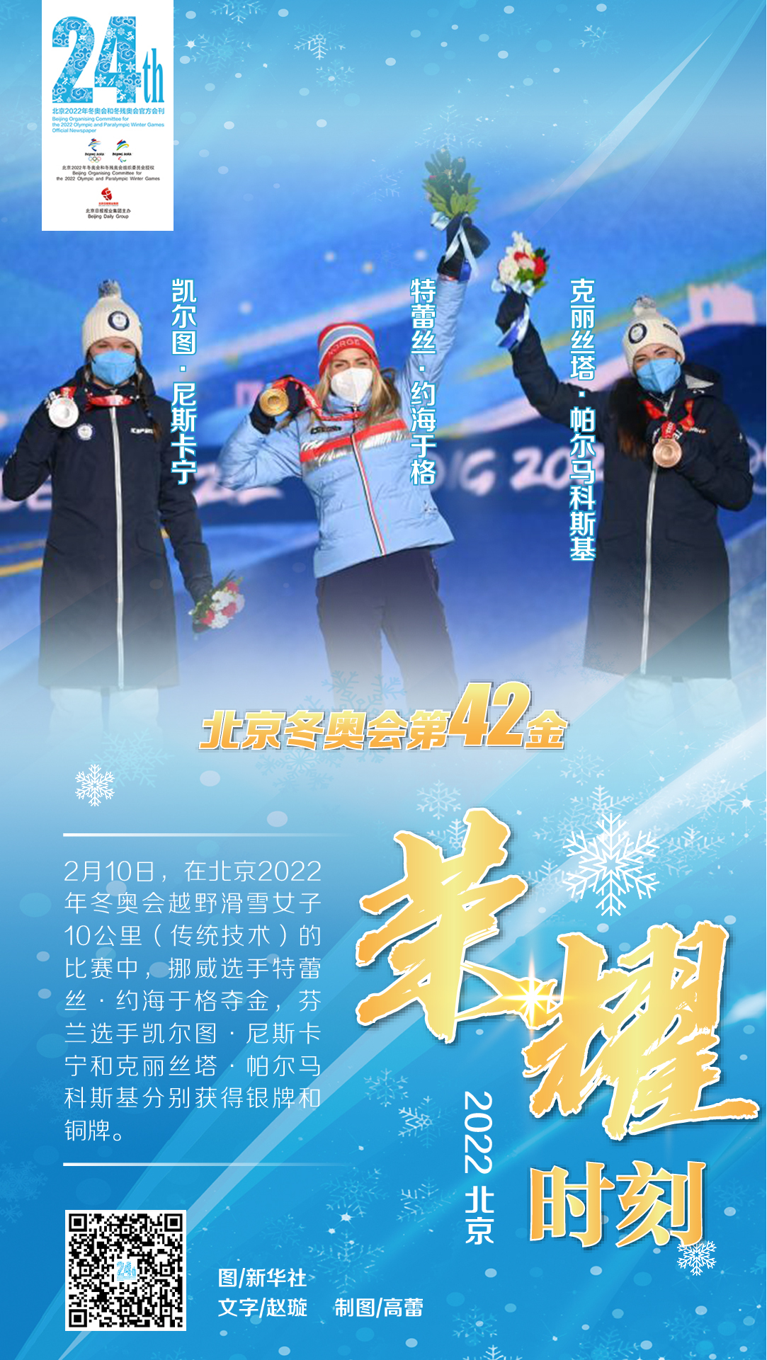 北京冬奥会第42金:挪威选手特蕾丝·约海于格夺金