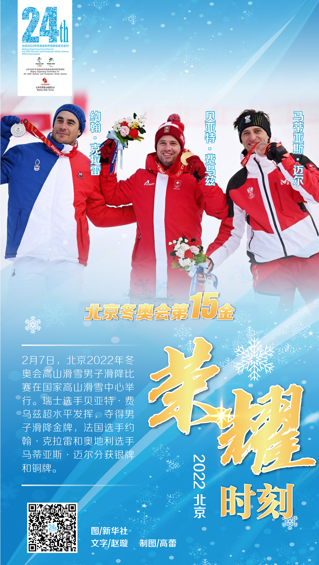 北京冬奥会第15金:瑞士选手贝亚特·费乌兹夺得高山滑雪男子滑降金牌