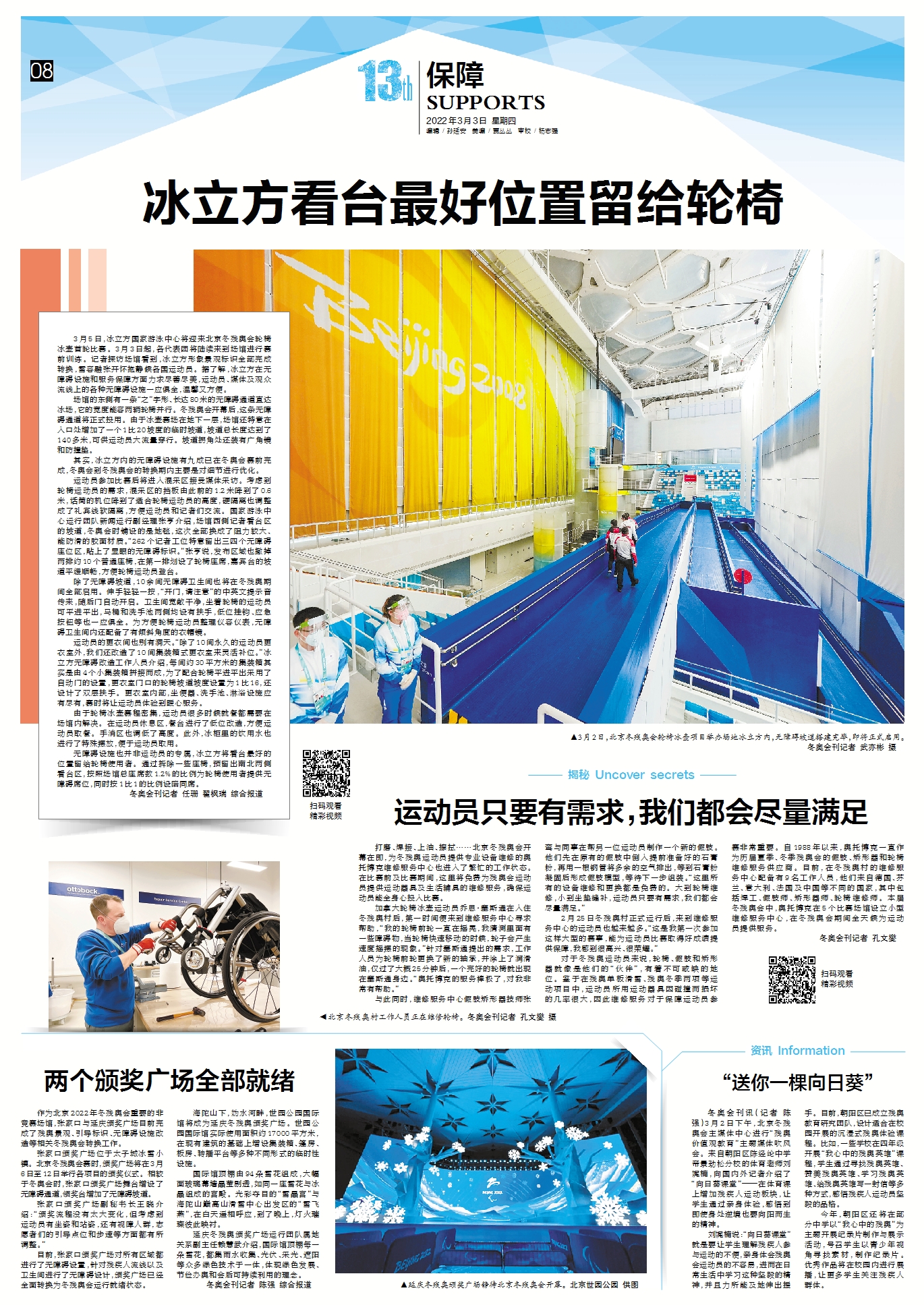 目前,张家口颁奖广场对所有区域都进行了无障碍设置,针对残疾人流线以及卫生间进行了无障碍设计,颁奖广场已经全面转换为冬残奥会运行就绪状态。