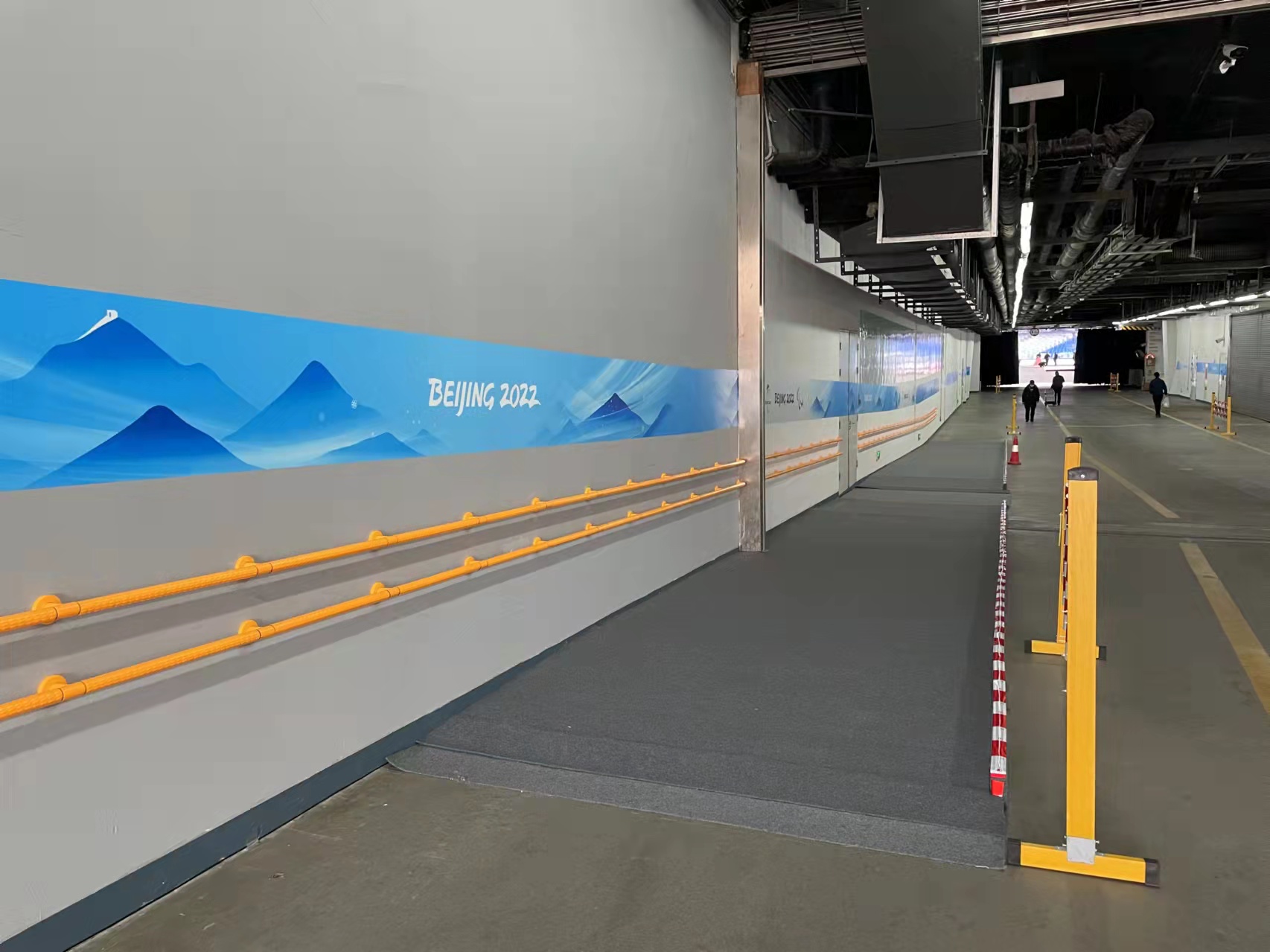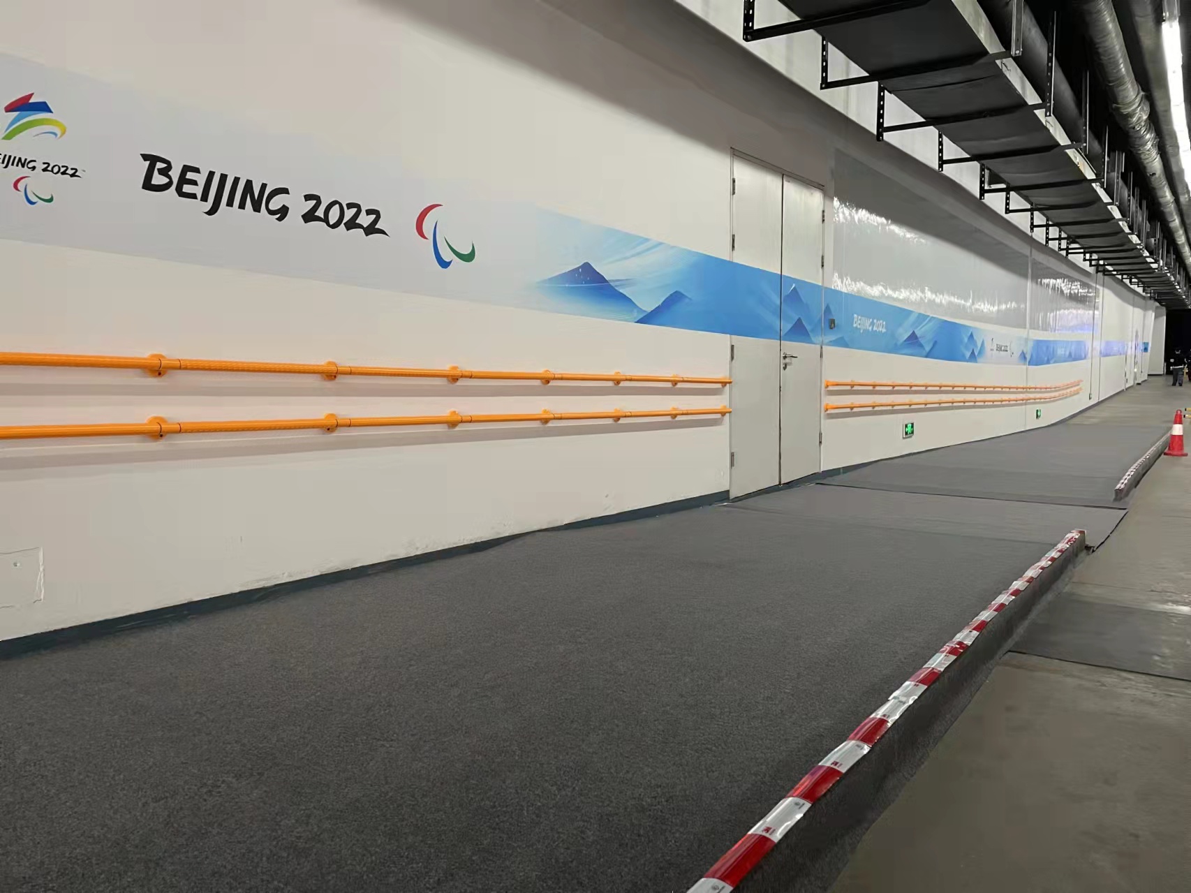 当冬残奥会运动员乘坐无障碍车辆抵达落客区后,轮椅运动员可通过临时搭建的25组无障碍坡道顺利“落地”。多个轮椅坡道两侧衔接点、重要出入口,均经过多次演练测试。在候场区里,无障碍设施完备、功能完善,出入口处均设有零高差处理的无障碍坡道,确保轮椅过坡平稳。