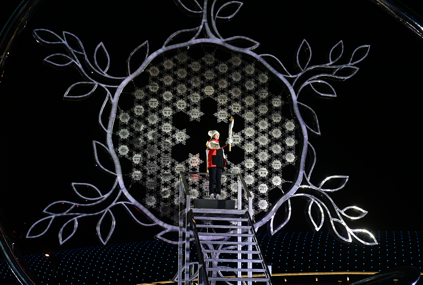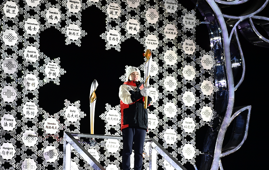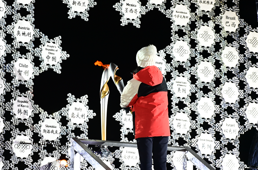 当日晚9点半左右,火炬台周边灯光璀璨,欢呼声此起彼伏。张家口赛区以热烈的方式迎接这神圣时刻的到来。