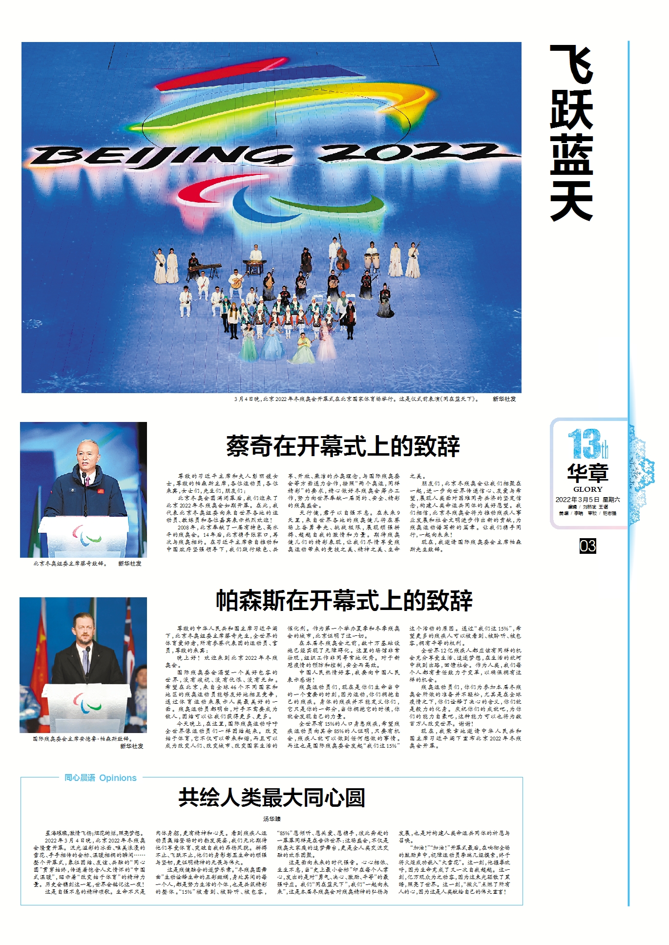 请珍藏这幅开幕式“画卷” 冬残奥会会刊3月5日精彩版面速览