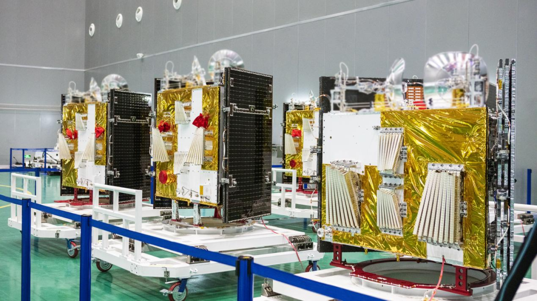 ▲图为银河航天批量研制的低轨宽带通信卫星