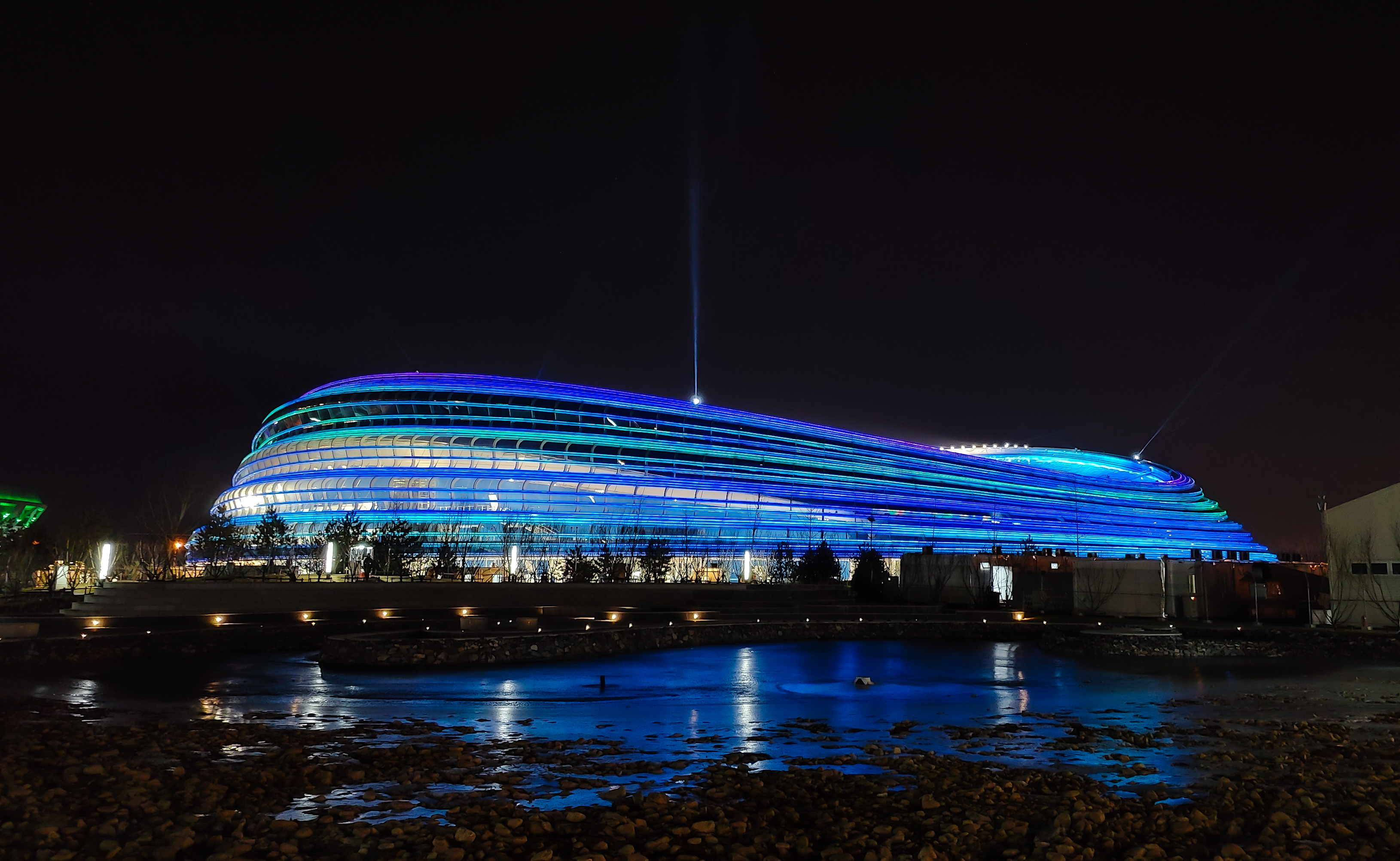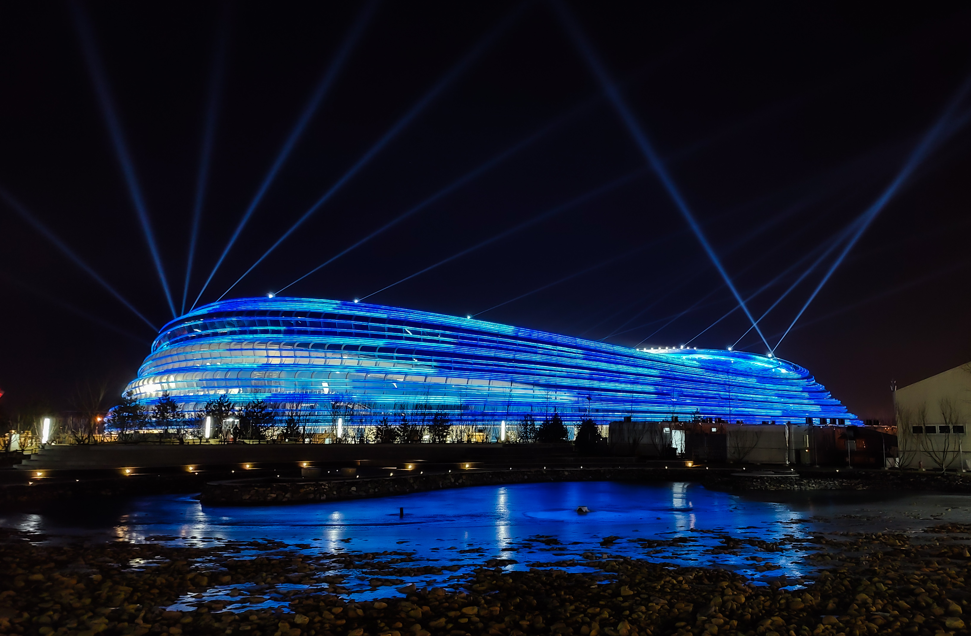 此前,在2月12日晚,国家速滑馆“冰丝带”诞生北京冬奥会中国男子速滑首金,中国选手高亭宇在速度滑冰男子500米决赛中夺冠,当晚“冰丝带”首次开启了中国队冬奥夺金的专属灯光。金色灯光在奥林匹克公园北侧闪耀,这是 “冰丝带”的荣耀,也是对所有参与国家速滑馆设计、建设、赛事服务保障人员的致敬。