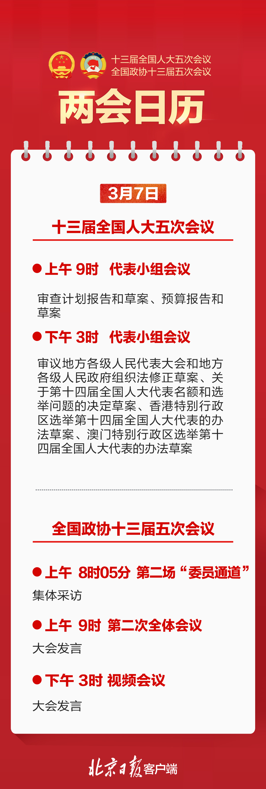 3月7日两会日历|人大代表小组会议,政协第二次全体会议