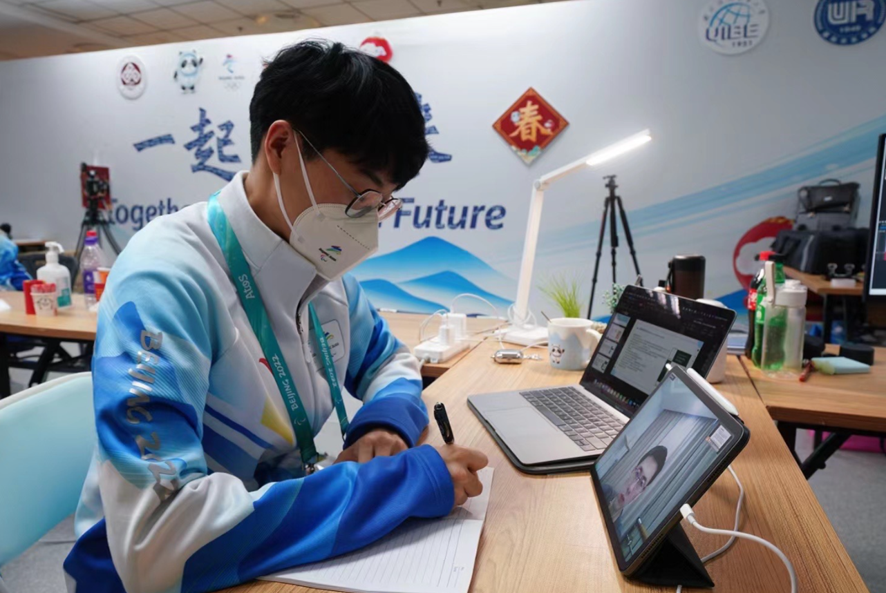 “一人一策”的学习方案成标配。北京中医药大学调研了冬残奥志愿者的工作时间和课程安排,为他们制定了个性化的“课程表”,确保不落下任何一节课。针对研究生志愿者,该校还开展线上实习、组会等活动,保障他们紧跟导师脚步,“志愿服务不脱岗”。北京工商大学则为学生配备了驻地管家,对志愿者的学习、生活需求“秒回”。北京林业大学也为每位志愿者分配了一对一联系老师,为他们参与“云端”学习保驾护航。
