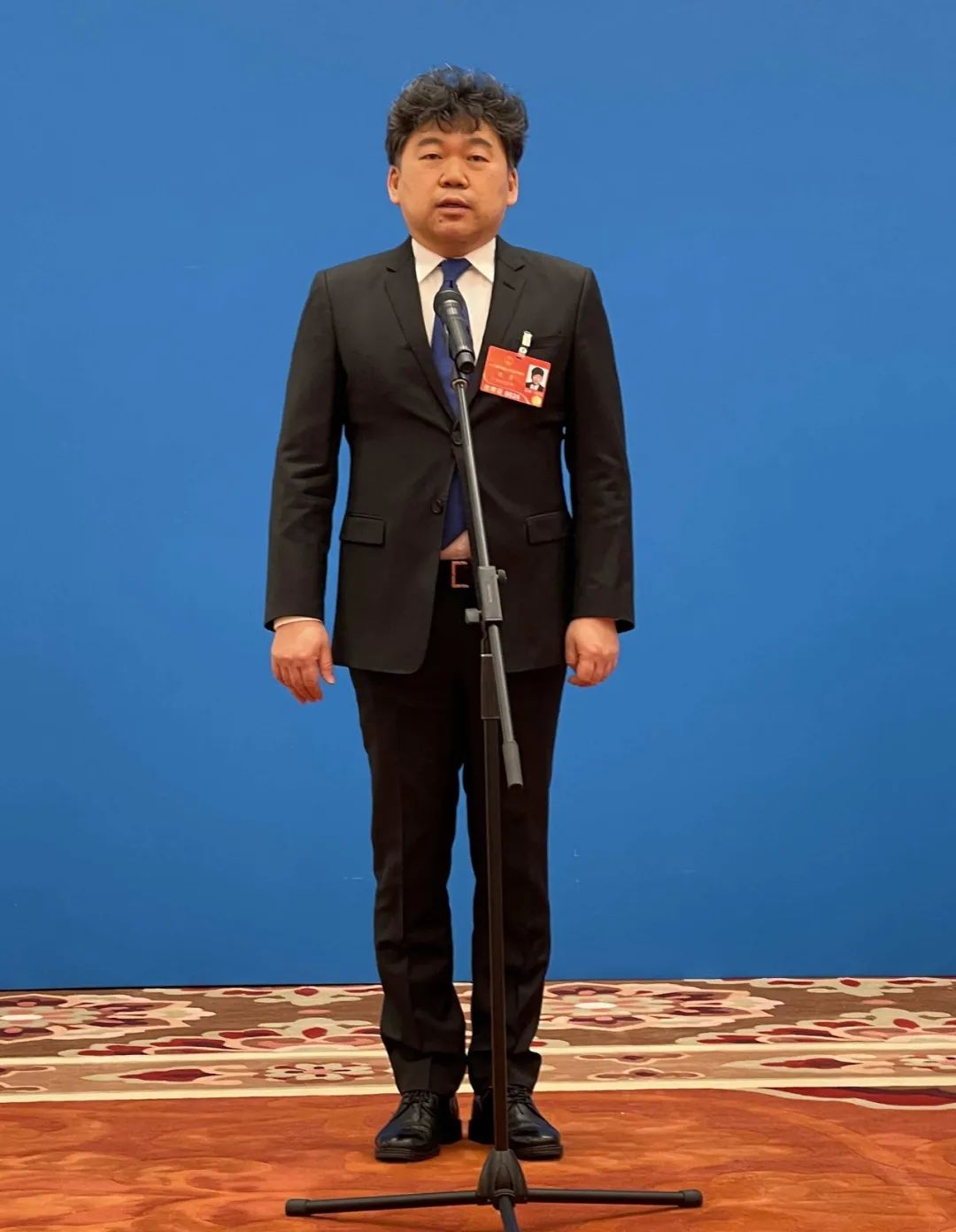 吴晨在十三届全国人大五次会议首场“代表通道”上表示,“新首钢园区惊艳亮相冬奥,完成了世界性的挑战与课题。”(摄影:田洪俊)