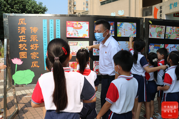 图为黄欢生前在“风清正校园 传承好家风”系列活动中,向小学生讲述传承好家风的重要意义。李红琳 摄