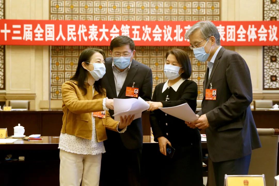 ▲出席十三届全国人大五次的侯湛莹(左三)等代表为2022年各项工作点赞