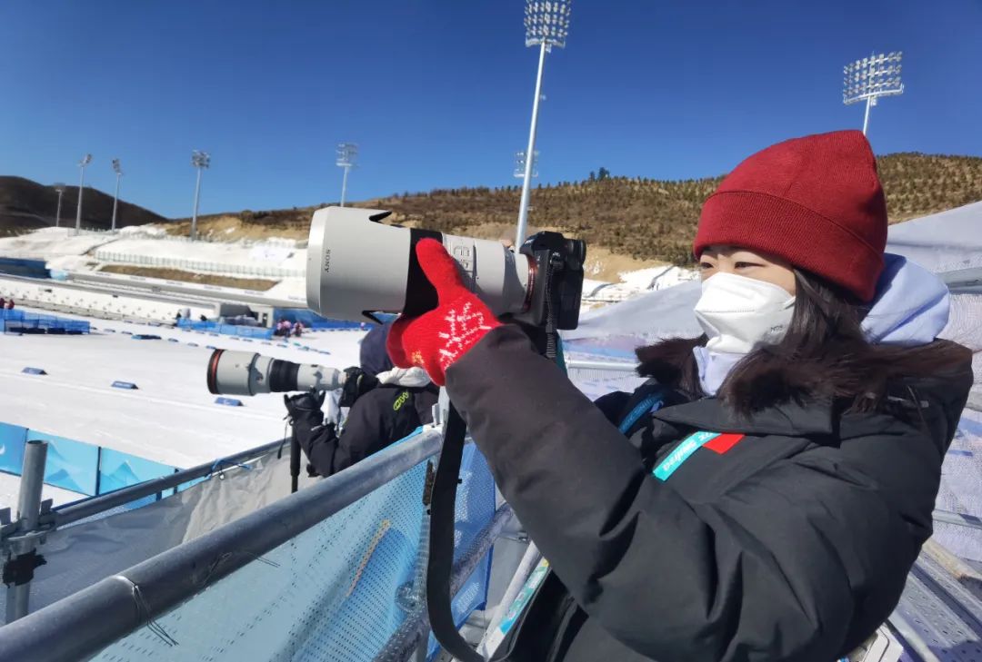 视频直播编辑部王雅贤在张家口冬季两项中心拍摄冬残奥越野滑雪比赛