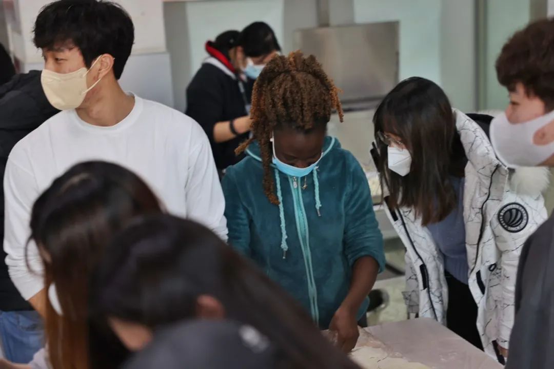 除夕夜,科教卫新闻部何蕊(右二)采访高校冬奥志愿者过年