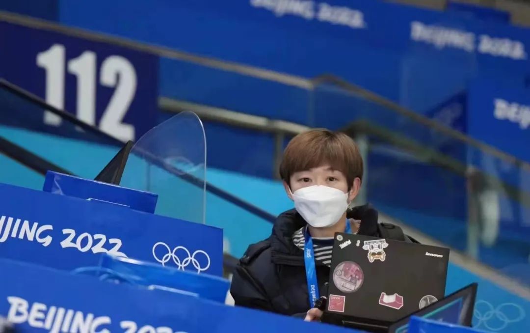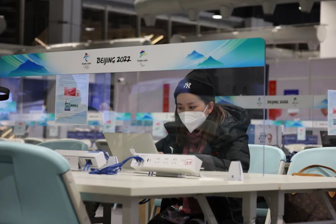 体育新闻部王笑笑在冬奥会赛场撰写稿件