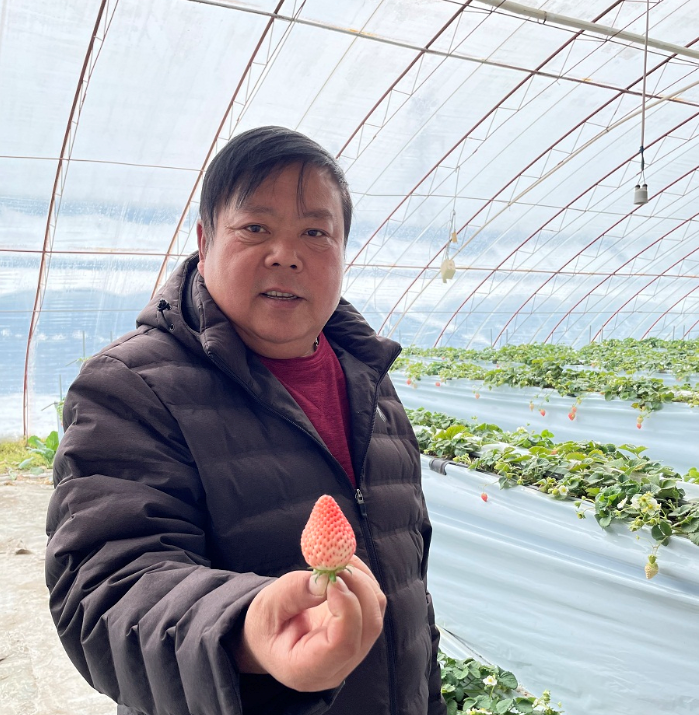 崔维国推门进入草莓大棚,一阵温暖湿润扑面而来。半人高的架子整齐排列,簇簇草莓争相探头。白色妖姬、白玉、粉玉……都是时下最新鲜稀罕的白草莓,咬在嘴里迸发出清甜汁水。“精选的这几个品种特别热销,得提前一周预约发货。今年我们试种下来,把各种数据记录清楚,计划明年向农户推广。”