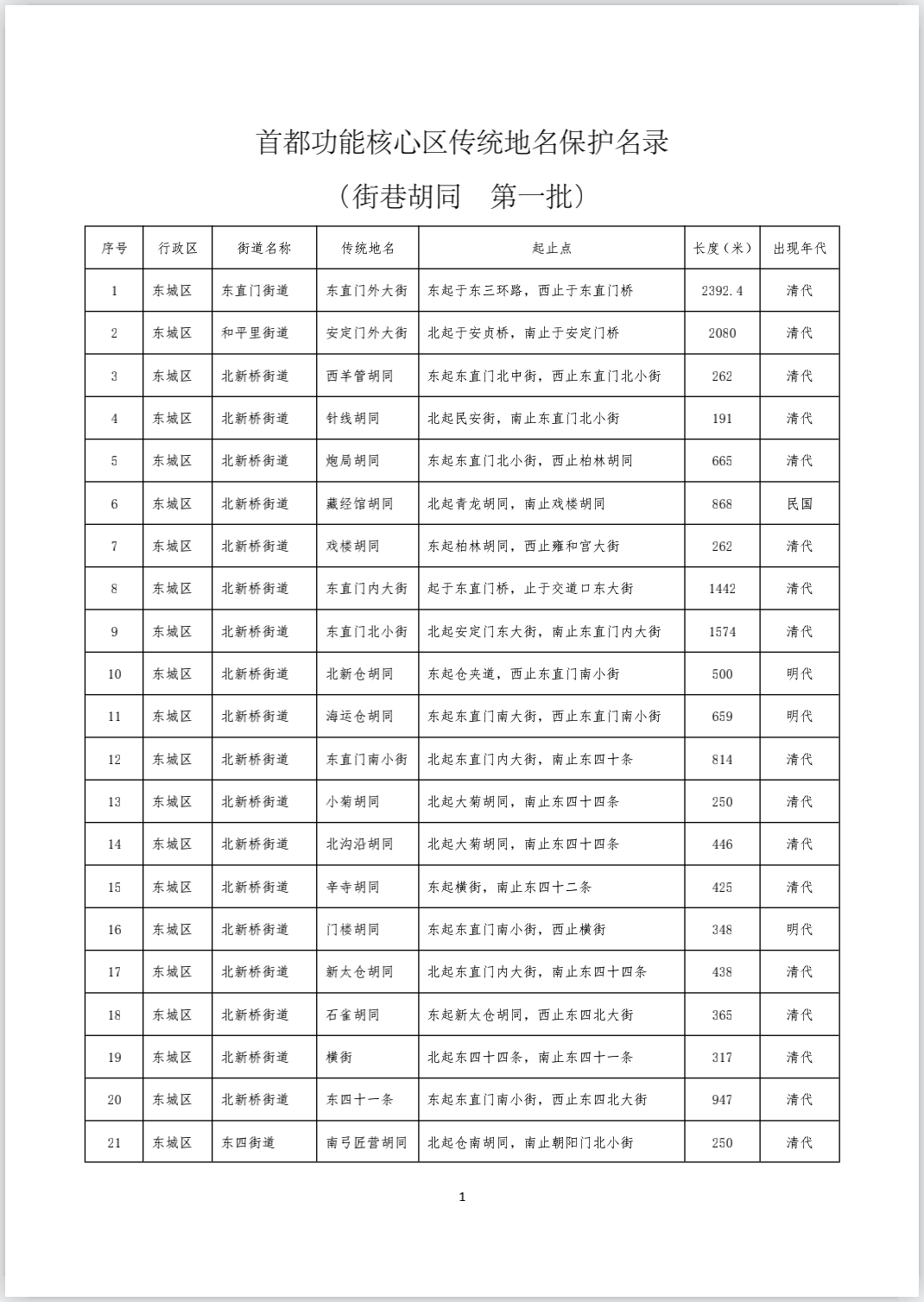 《首都功能核心区传统地名保护名录(街巷胡同类 第一批)》完整版