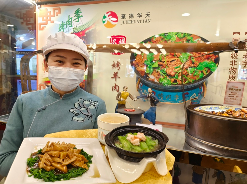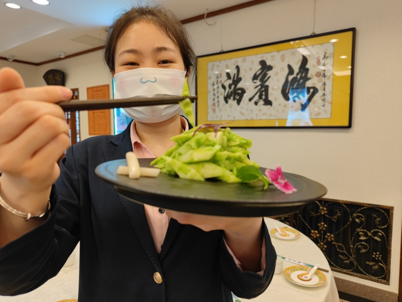 此外,鸿宾楼的椿香春笋,将春季鲜香之美的香椿和春笋结合在一起;烤肉季也提前备下了浓汤茭白鱼肚、炒头春笋和鲜虾丝瓜煲等春菜,今天中午也几乎是每桌必点。
