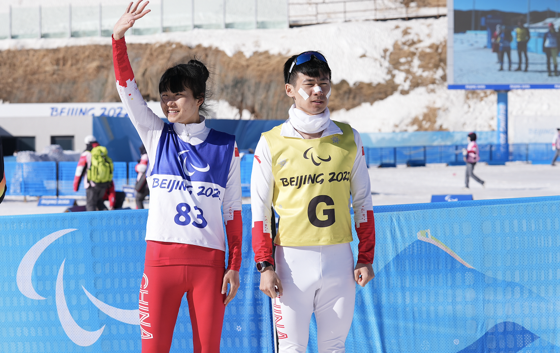 3月8日下午,在北京冬残奥会残奥冬季两项女子中距离(视障)比赛中,中国运动员王跃获得第三名。“妇女节”当天,作为女子视障运动员的她实现了“让世界看到我”的梦想。