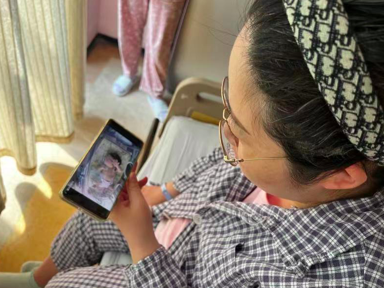 患儿入院后,家长签署知情同意书及绑定手机号后,就可以在预定时间通过手机视频实时“连线”病房内的宝宝了。
