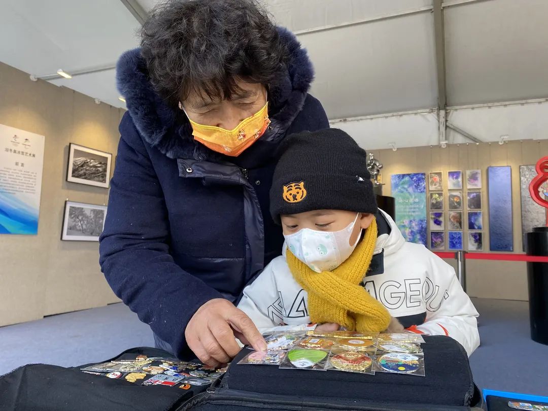 “我有一枚‘冰墩墩’徽章。我昨天和奶奶来了一次,今天又来了。我将其中一款北京2022年冬奥会的特色徽章换成了一个造型为‘鼎’的徽章,‘鼎’上还有2008年奥运会会标,我喜欢这个鼎的样子!”一位小朋友对记者说。