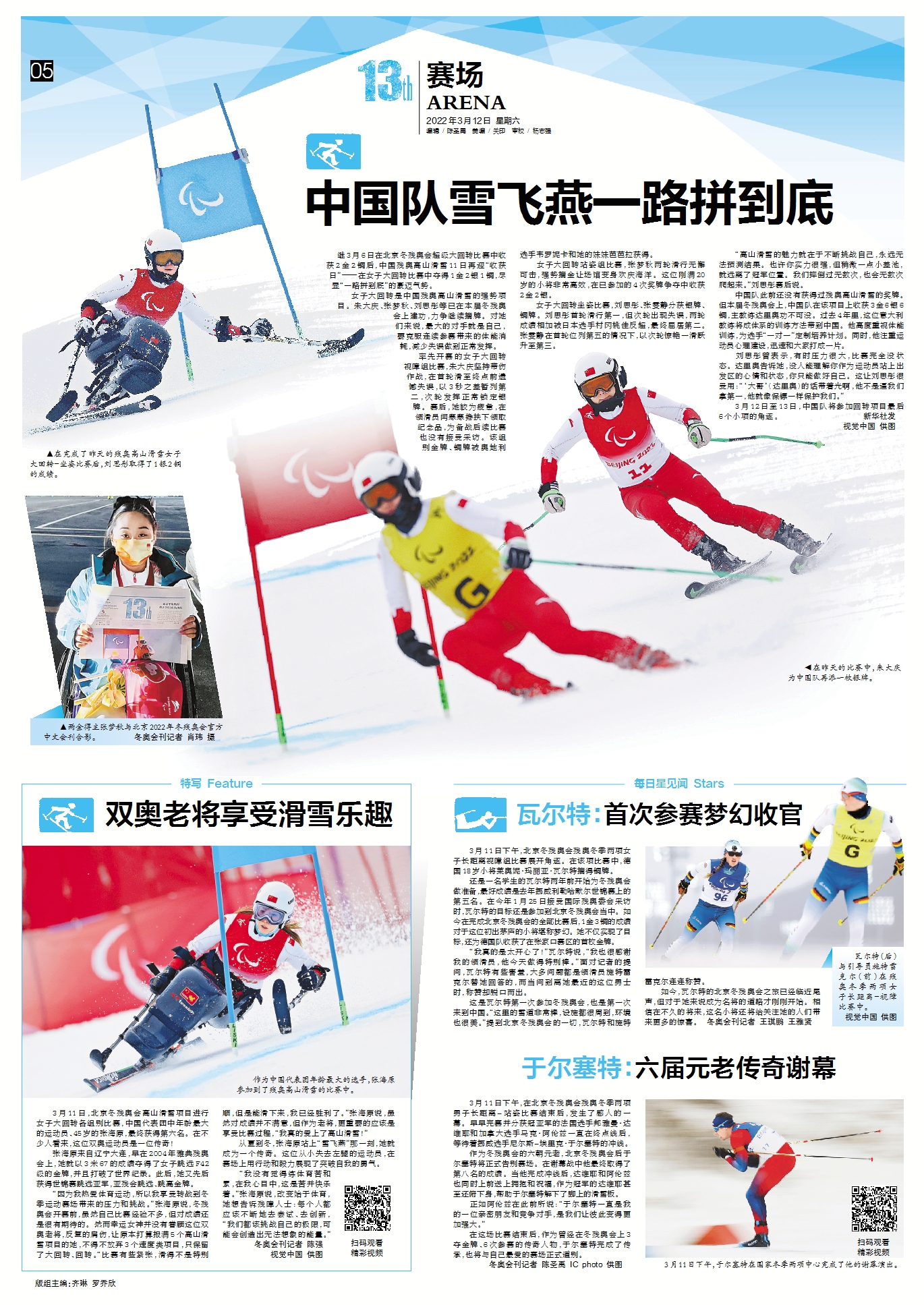 “因为我热爱体育运动,所以我享受转战到冬季运动赛场带来的压力和挑战。”张海原说,冬残奥会开赛前,虽然自己比赛经验不多,但对成绩还是很有期待的。然而幸运女神并没有眷顾这位双奥老将,反复的肩伤,让原本打算报满5个高山滑雪项目的她,不得不放弃3个速度类项目,只保留了大回转、回转。“比赛有些紧张,滑得不是特别顺,但是能滑下来,我已经胜利了。”张海原说,虽然对成绩并不满意,但作为老将,更重要的应该是享受比赛过程,“我真的爱上了高山滑雪!”
