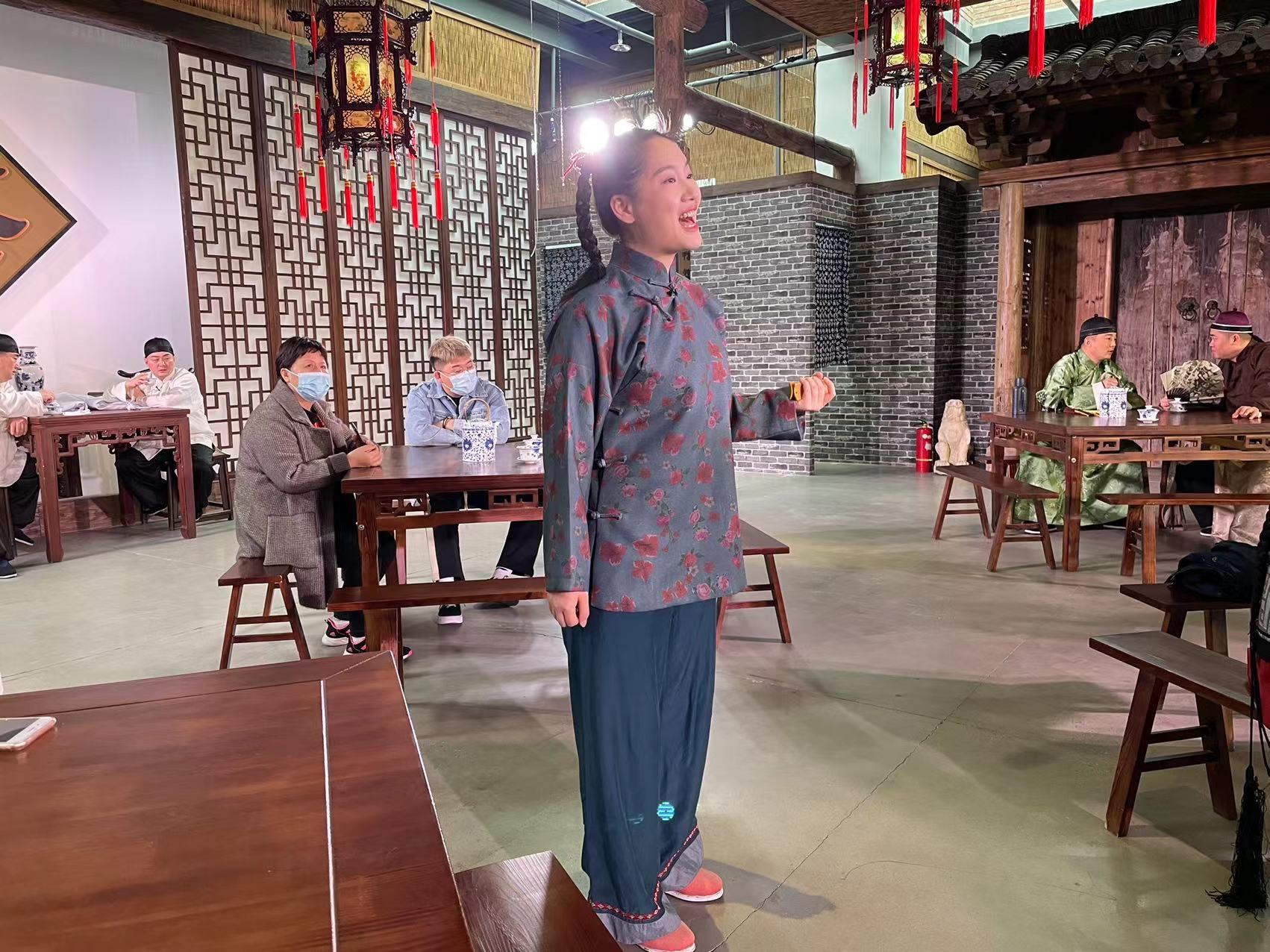 “从2019年开始我们演出了近200场,但是每一次在细节上都有不同,点菜等台词大家都会即兴发挥,演员也会互换角色交流体会。”北京市曲剧团演出部主任彭岩亮介绍,“而且我们也在不断调整变化,坐在观众身边时,我们会像生活中一样和他们聊天;站起身说台词、唱曲剧时,就会拿出专业的表演范儿。”