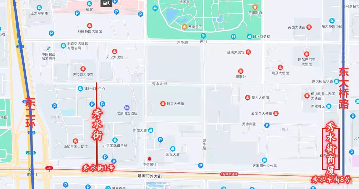 秀水街商厦回应称,“秀水街商厦”的“秀水街”是品牌名称,所在道路为秀水东街,位于齐家园外交公寓东侧、东大桥路西侧。“秀水街1号”中的“秀水街”是道路名称,毗邻东二环,位于建国门桥东北角。两者直线距离超过1公里。