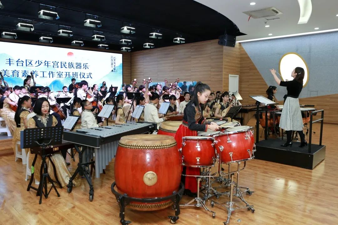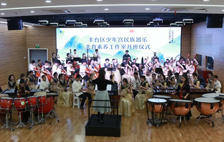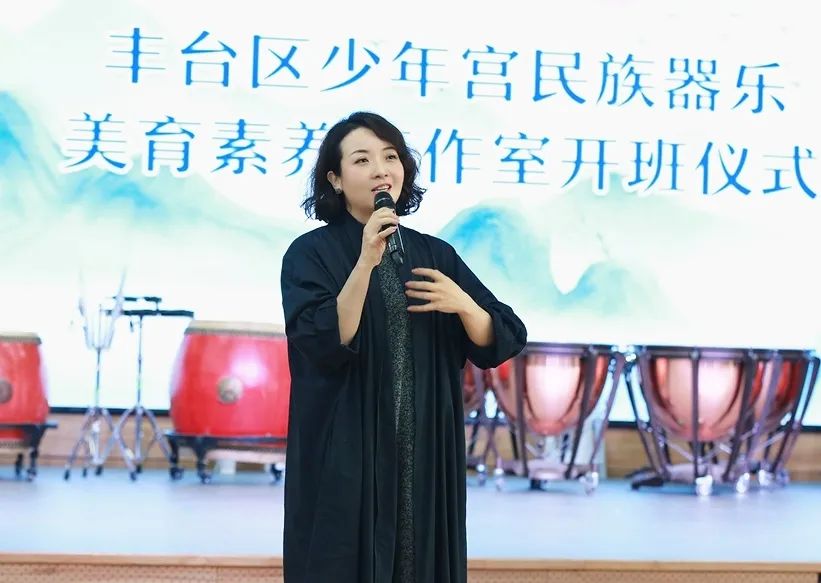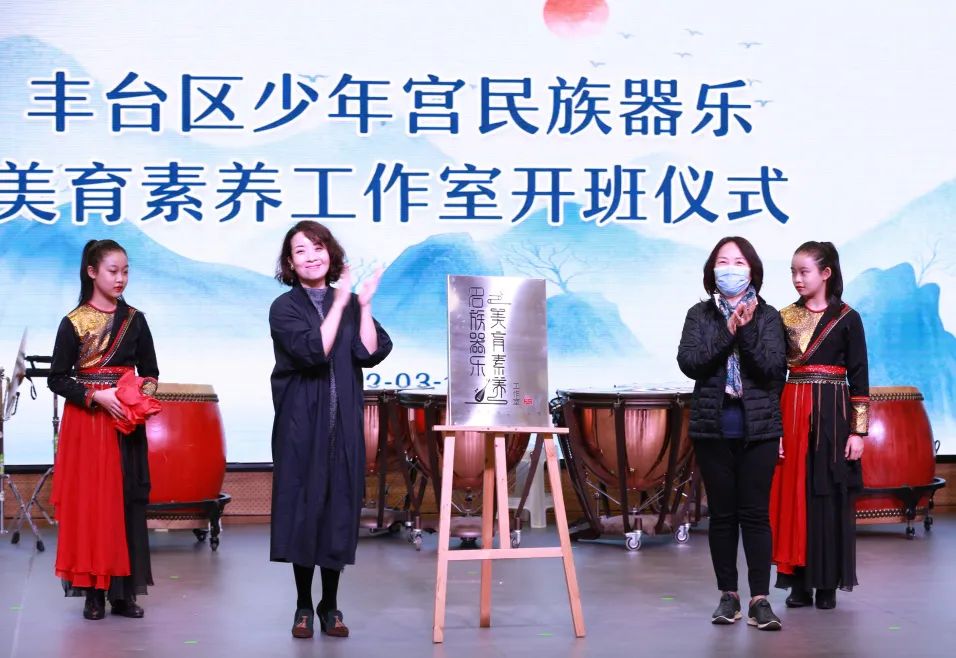 丰台区少年宫“民族器乐美育素养工作室”开班仪式活动于2022年3月13日上午9:00,在丰台区少年宫(本部)多功能厅举行。丰台区少年宫主任孙茜、党总支书记徐晓华、业务教学主管副主任翟鹏等出席活动。开班仪式还特别邀请到7位国内民族器乐界的大咖级专家: