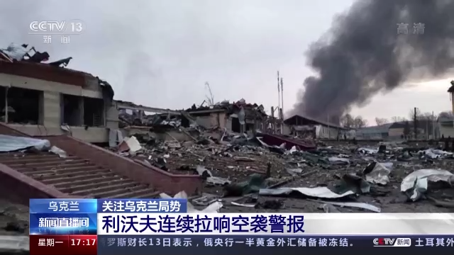 俄罗斯和乌克兰官员证实,俄罗斯军队13日空袭乌克兰西部利沃夫州一座大型军事基地。据正在利沃夫的总台记者报道,利沃夫14日连续响起空袭警报。