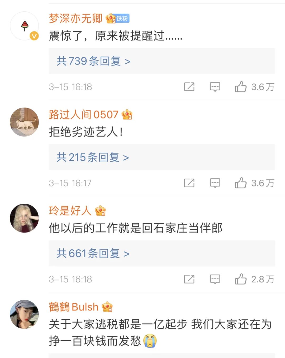 前有一爽=6.4亿,一薇=13.41亿 ,一冰=8.84亿……普通人看娱乐圈动辄以亿为单位的罚款,都傻傻地算不清帐了,他们挣的和我们挣的难道不是一种钱吗?