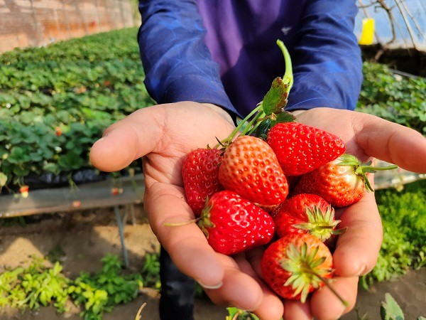 生产也是重中之重。孙雪娇表示,“草莓种植首先要进行温室消毒,高温消毒处理土壤中的致病微生物和杂草种子,有利于草莓健康生长且能防止杂草生长,在草莓生长季不使用除草剂处理。”