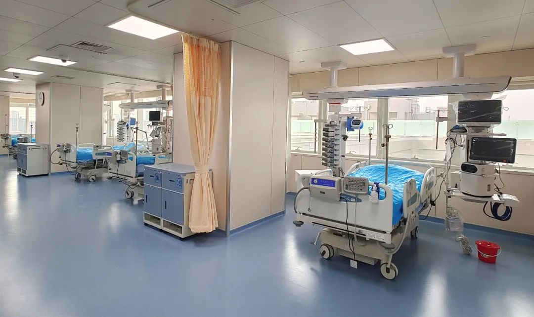 2022年3月16日,新龙泽院区呼吸重症监护病房(RICU)正式投入使用。作为呼吸与危重症医学科的重要组成部分,RICU设立在住院部南楼六层,床位6张,经过周密的筹备,在呼吸普通病房平稳运行八个月后,全科医护克服人员不足等困难,正式收治患者。
