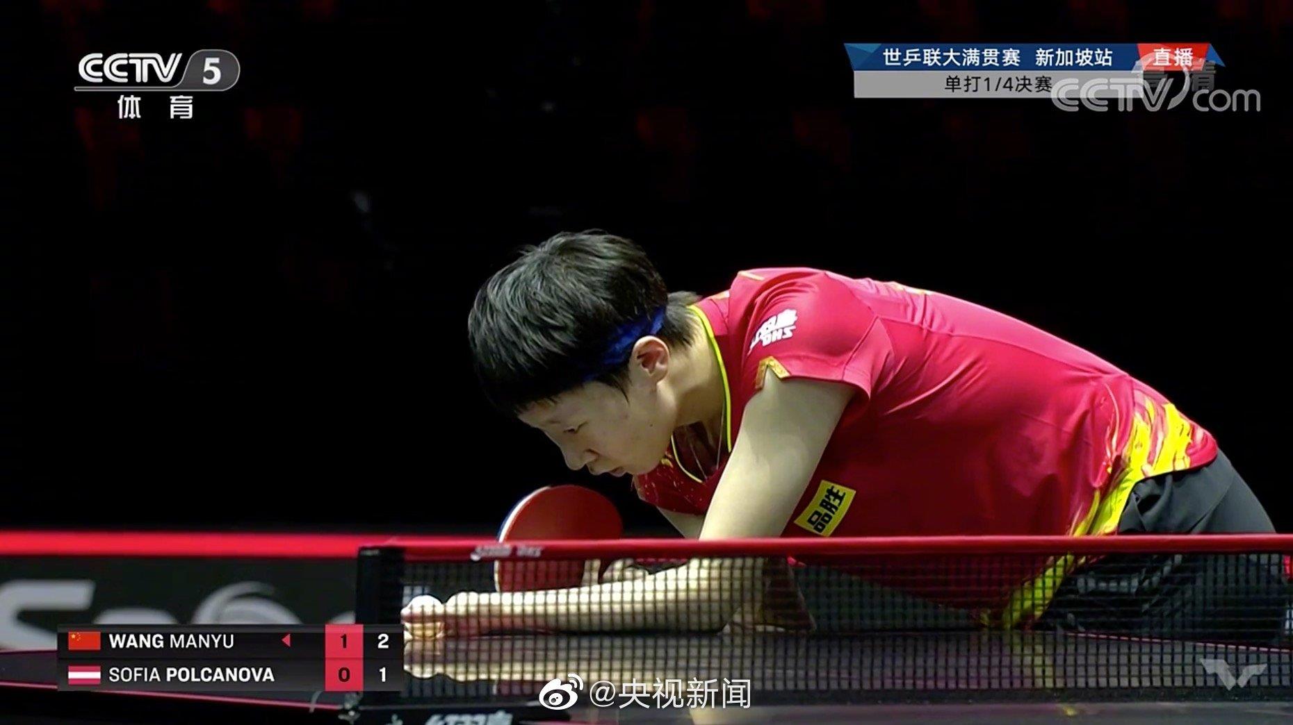 WTT新加坡大满贯女单1/4决赛,王曼昱VS奥地利选手波尔卡诺娃,王曼昱最终12-10/11-8/11-2大比分3-0战胜对手,晋级半决赛!至此,国乒已提前锁定WTT女单冠军!恭喜她们!