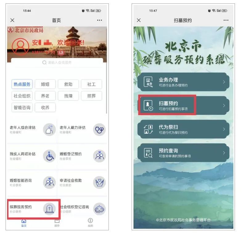 “北京通APP”中的“清明祭扫预约”栏目同样支持预约祭扫服务。