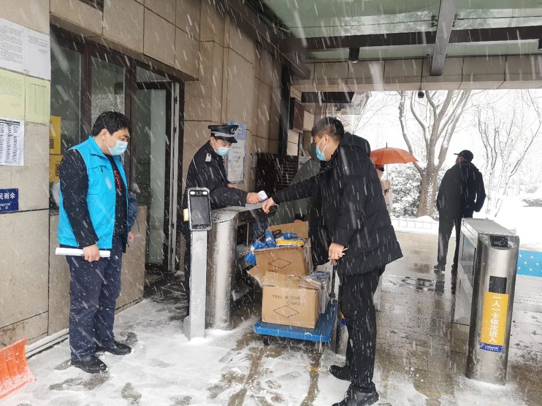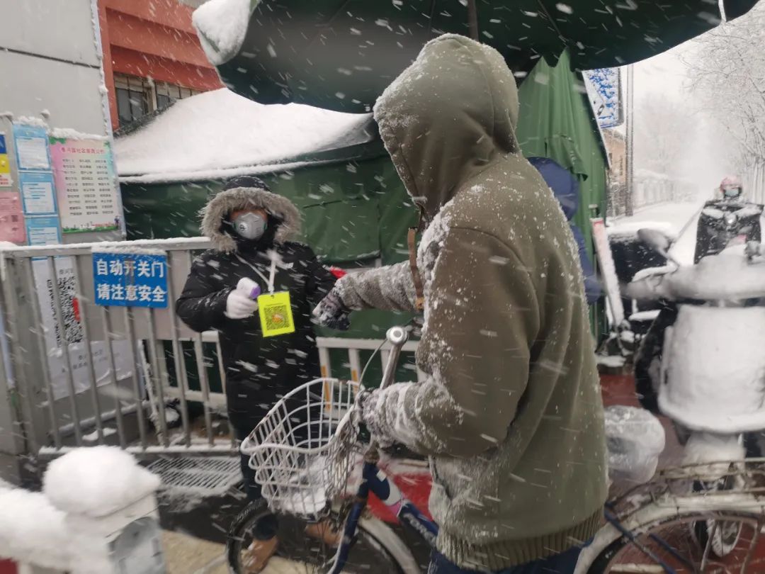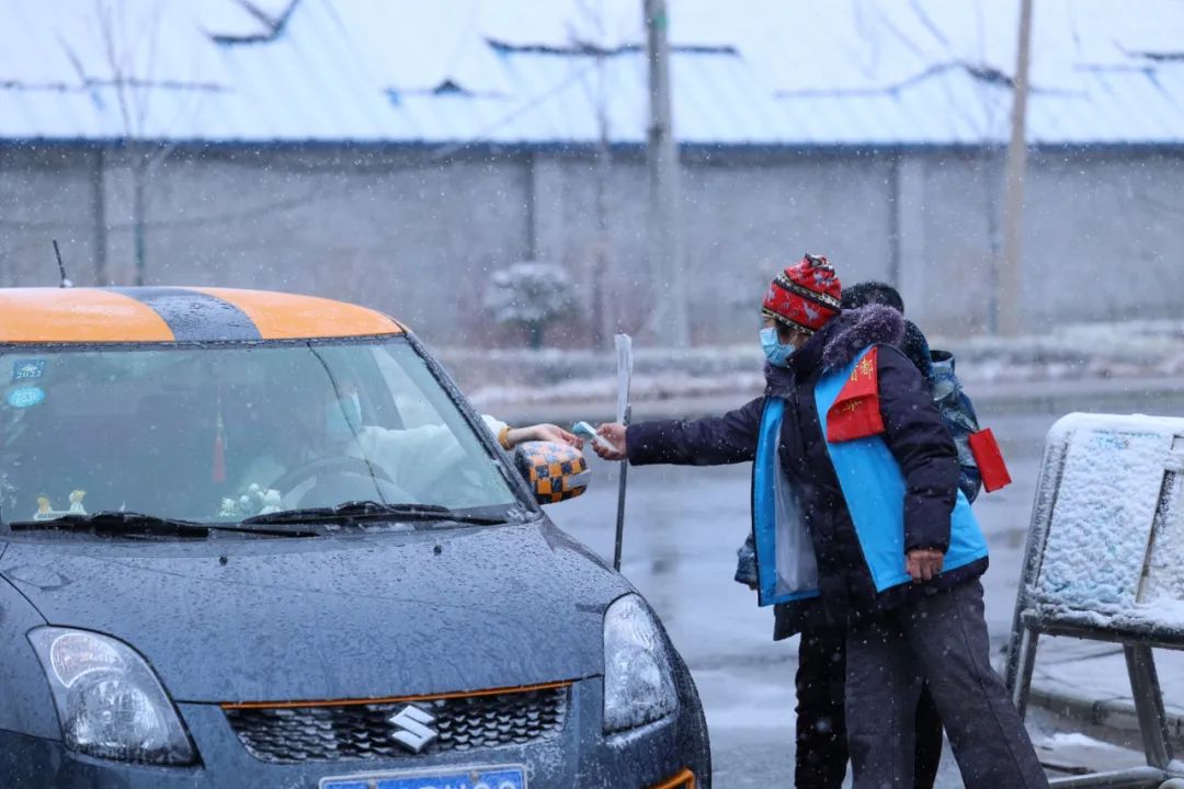 雪中各个村口、社区防疫工作依旧不松懈