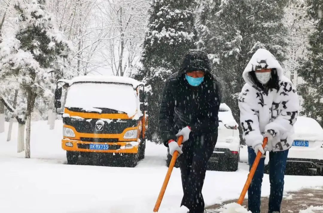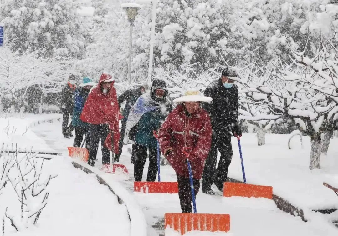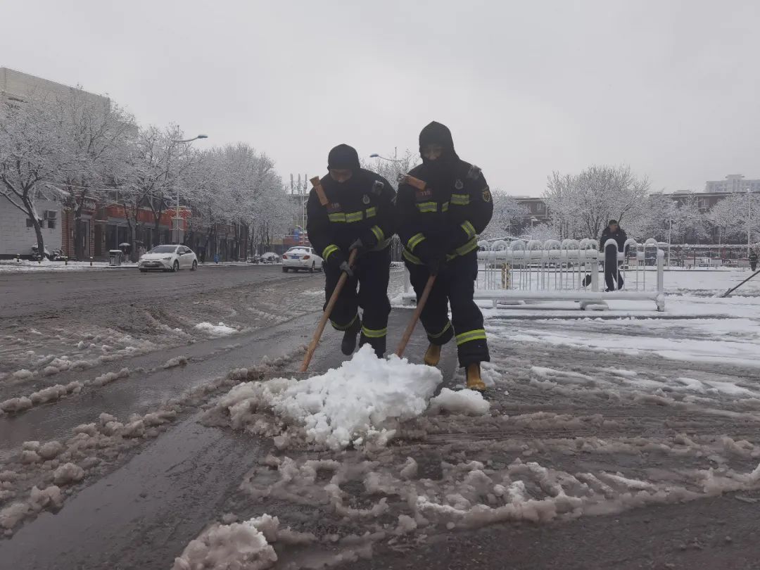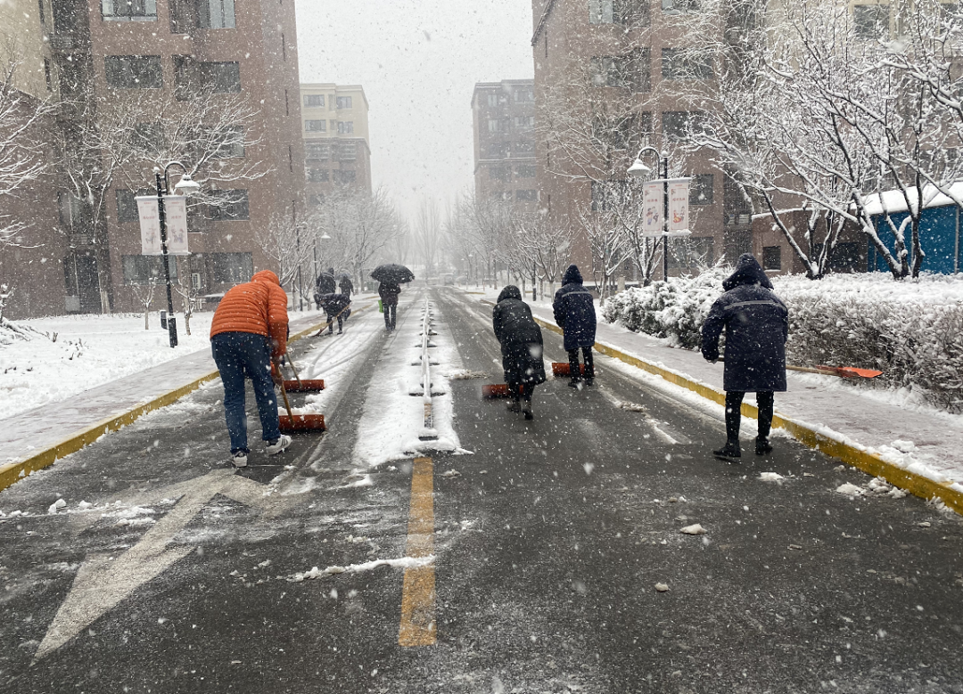 各个镇街、单位积极上街进行扫除铲冰
