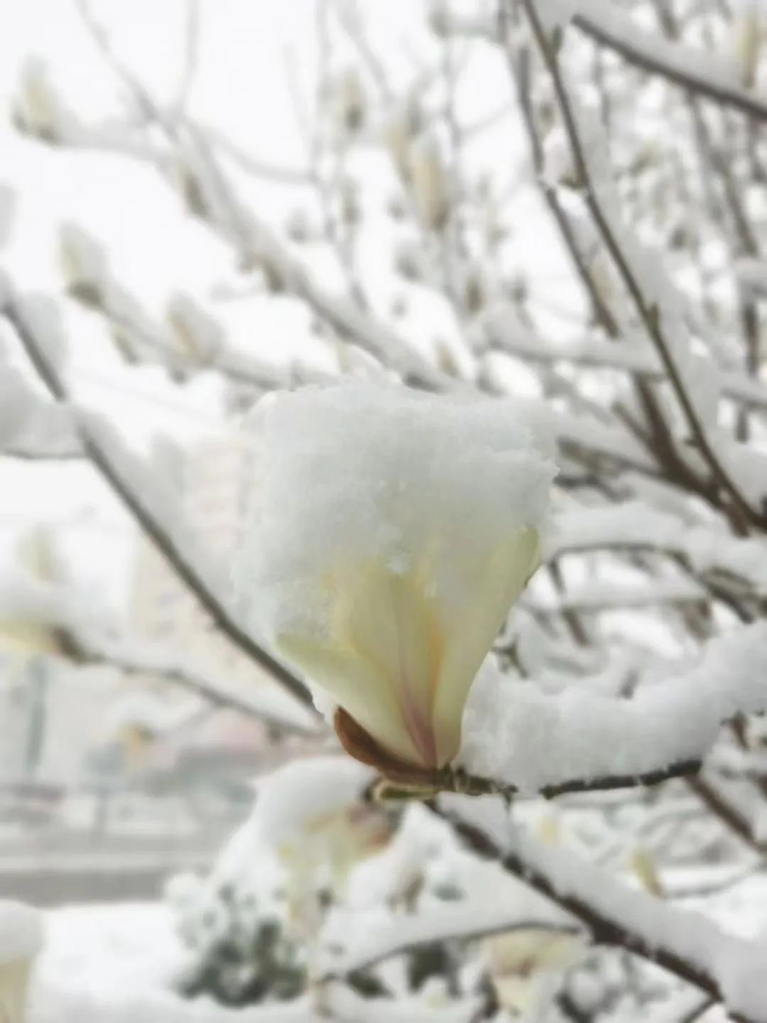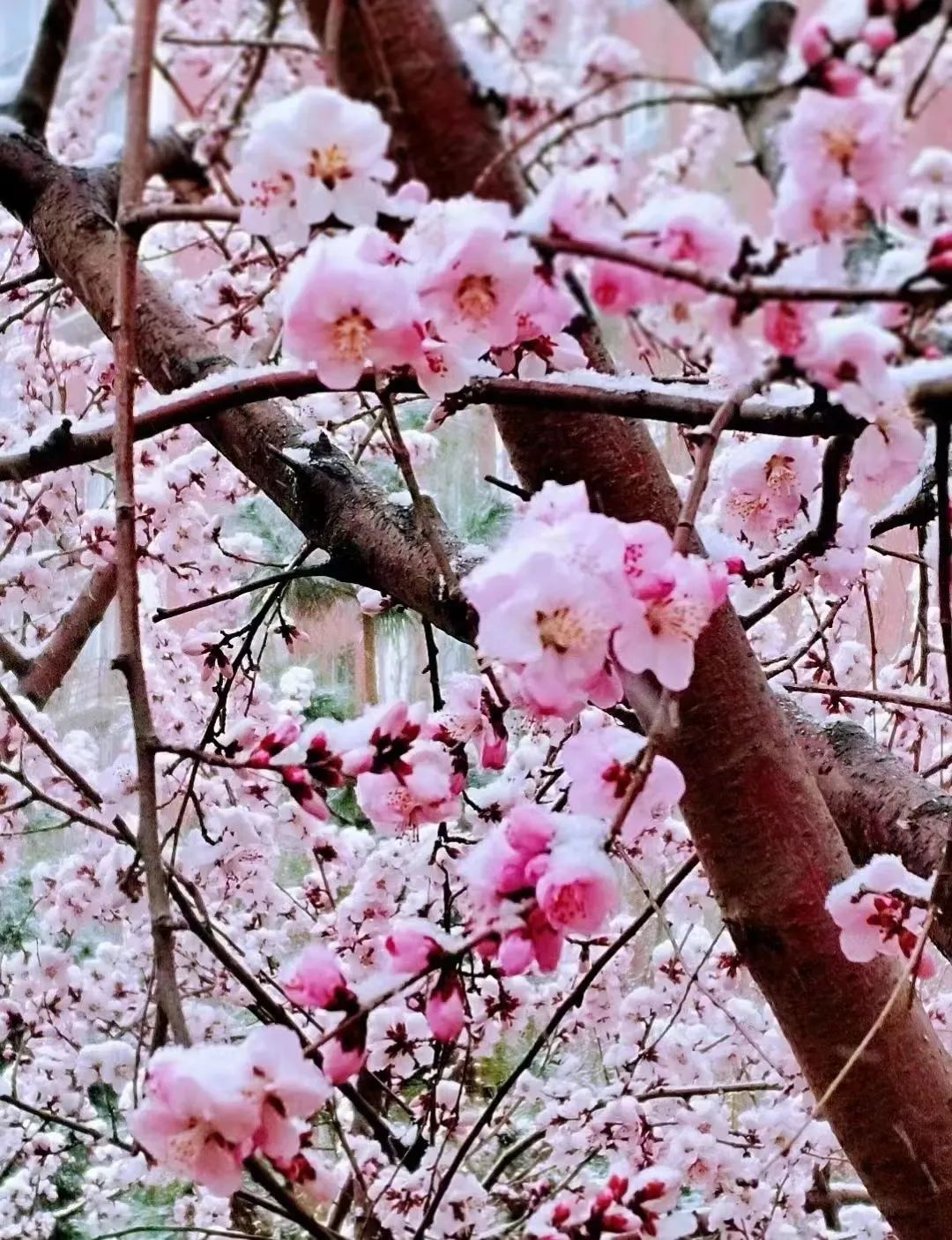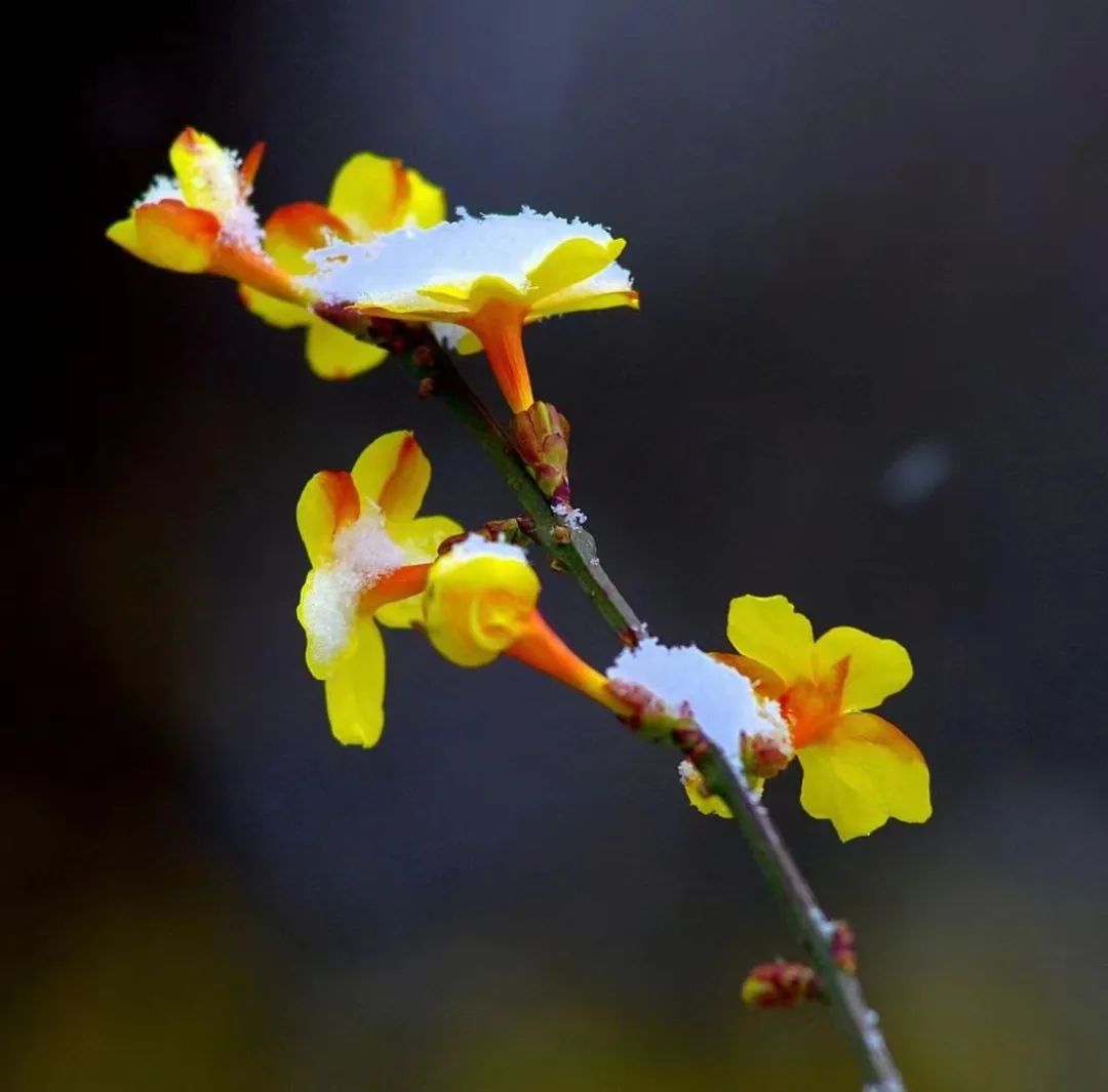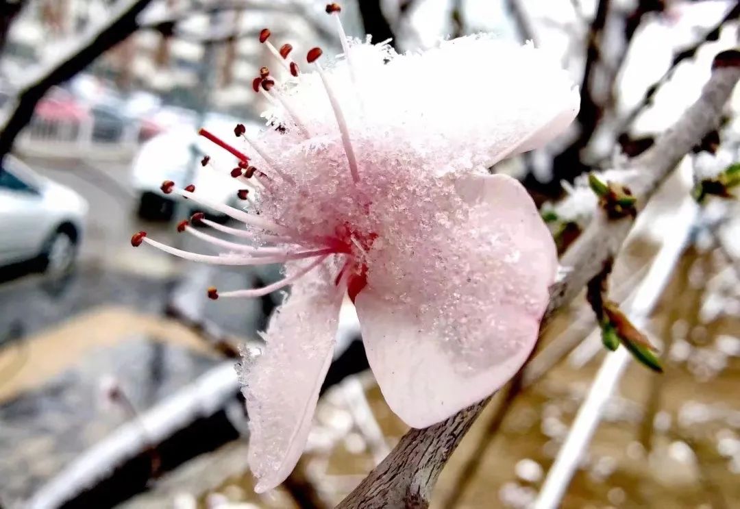 刚刚绽放花蕊的春花也跟春雪