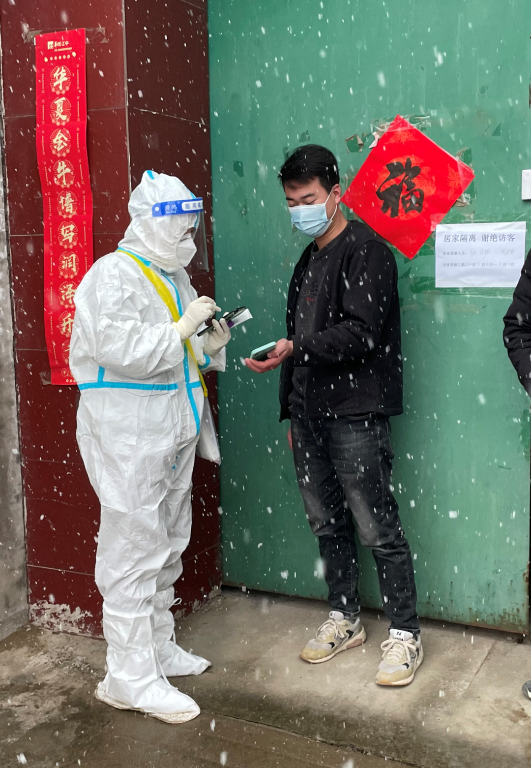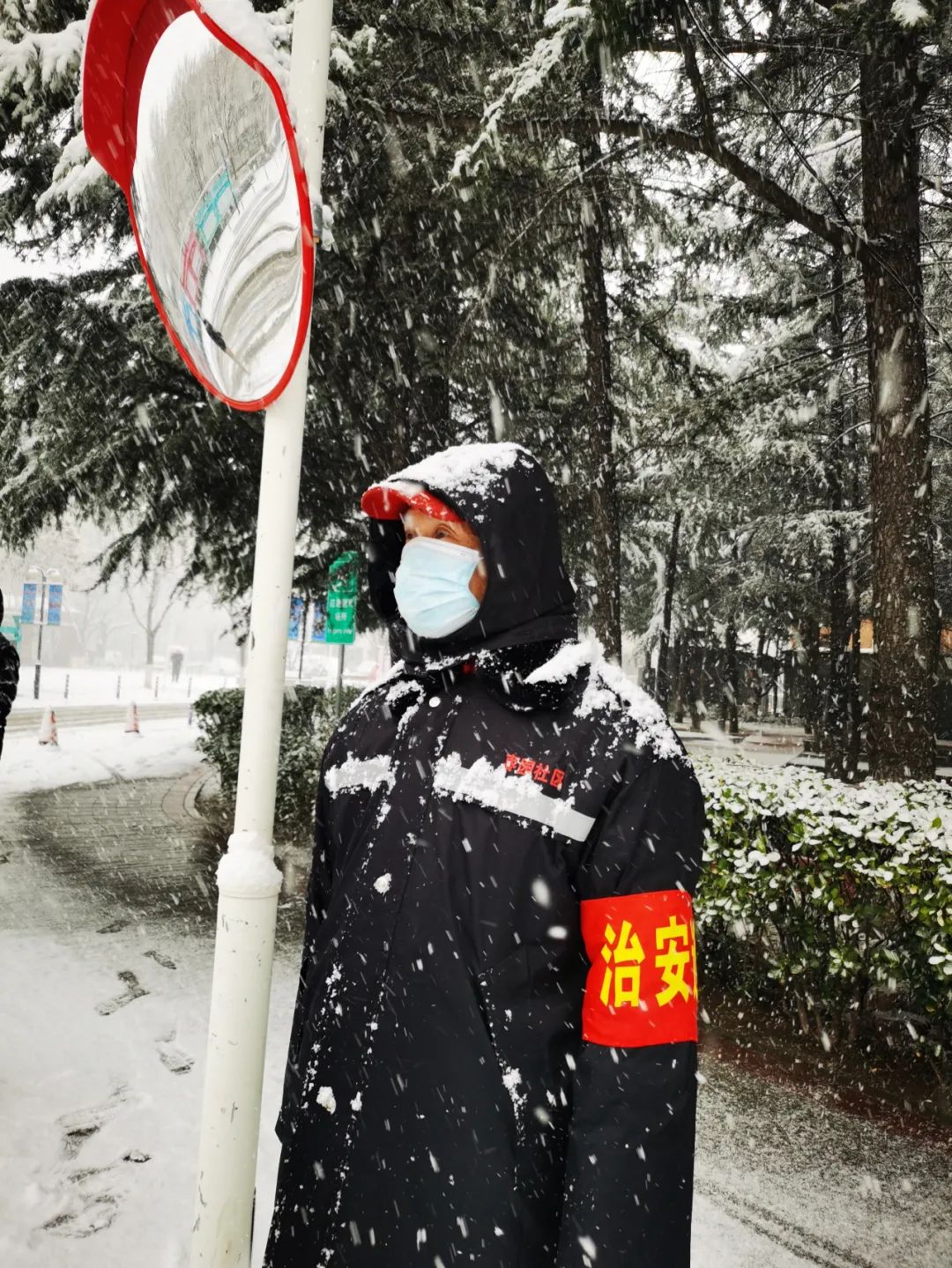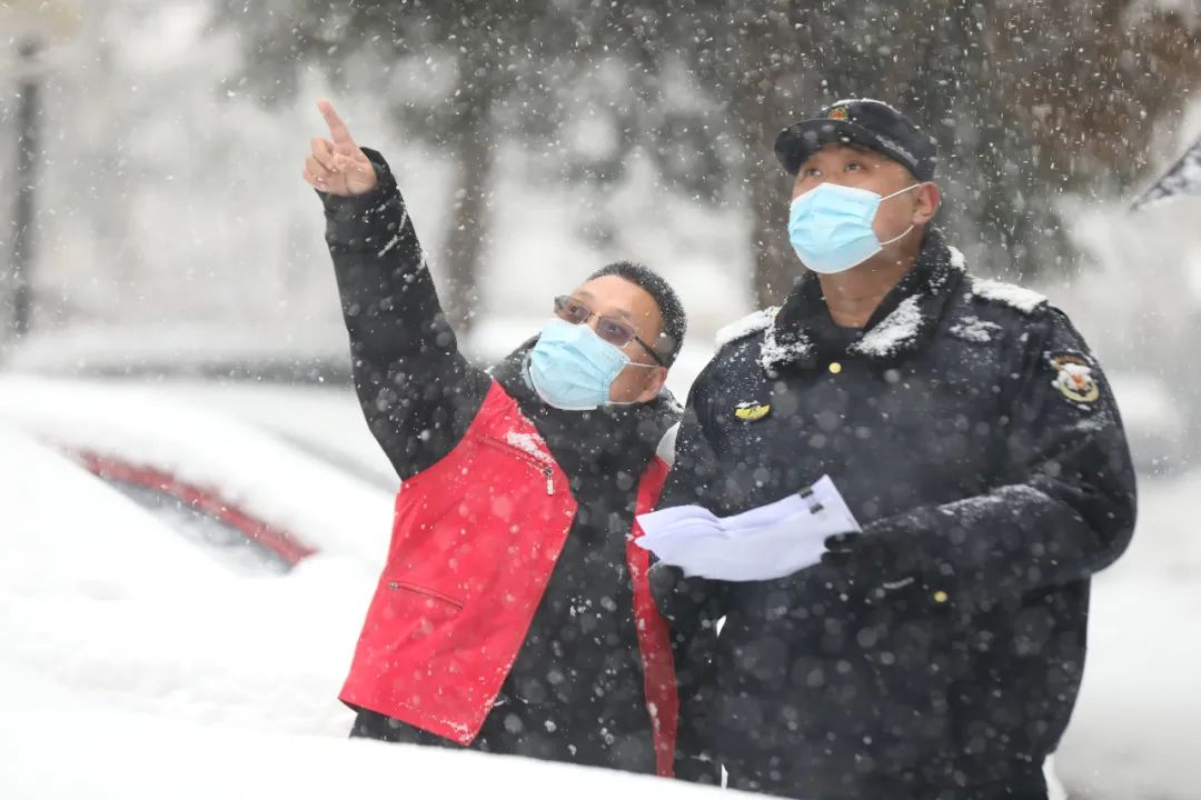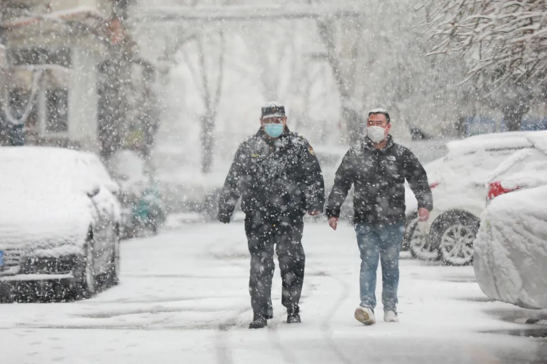 雪中值守的社区工作人员