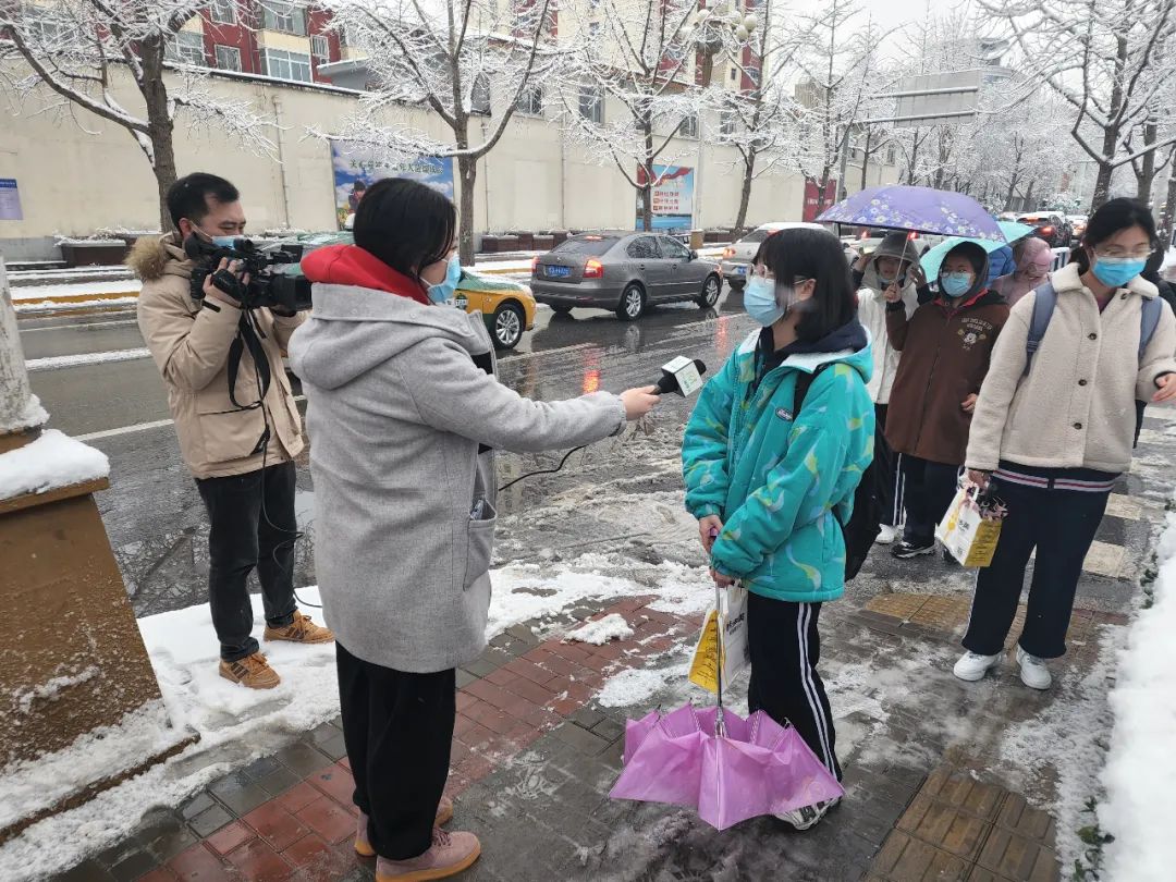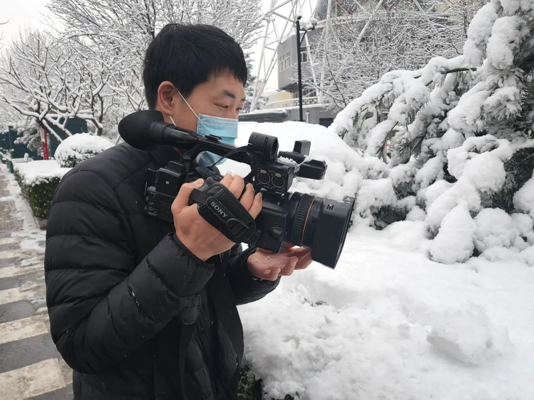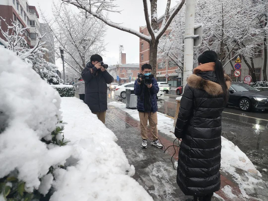 雪中采访的记者们