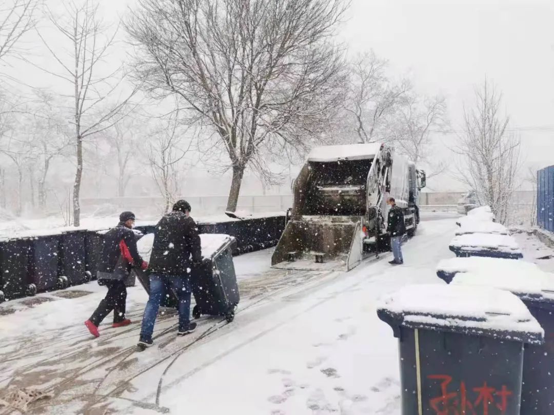 镇街工作人员冒雪清理垃圾