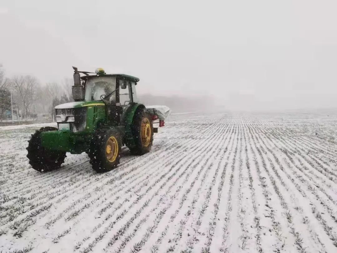 雪中机器在给农田抓紧施肥