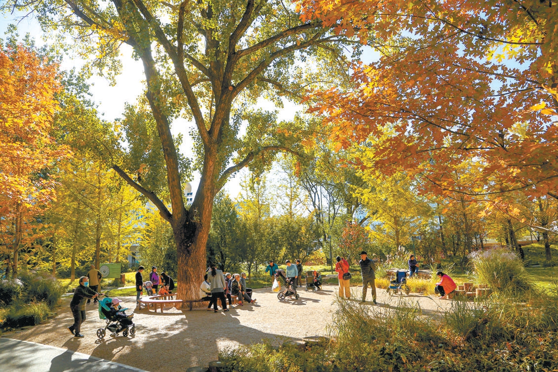 走到哪儿,都是郁郁葱葱的绿。北京市园林绿化局的统计数据显示,北京已被绿色环绕,大小公园超千个。2021年年底,全市森林覆盖率由12.83%提高到44.6%,城市绿化覆盖率由20.08%提高到49%,人均公共绿地面积达到16.6平方米。2025年前,除东、西城之外,其他14个区将全部创建成为国家森林城市。